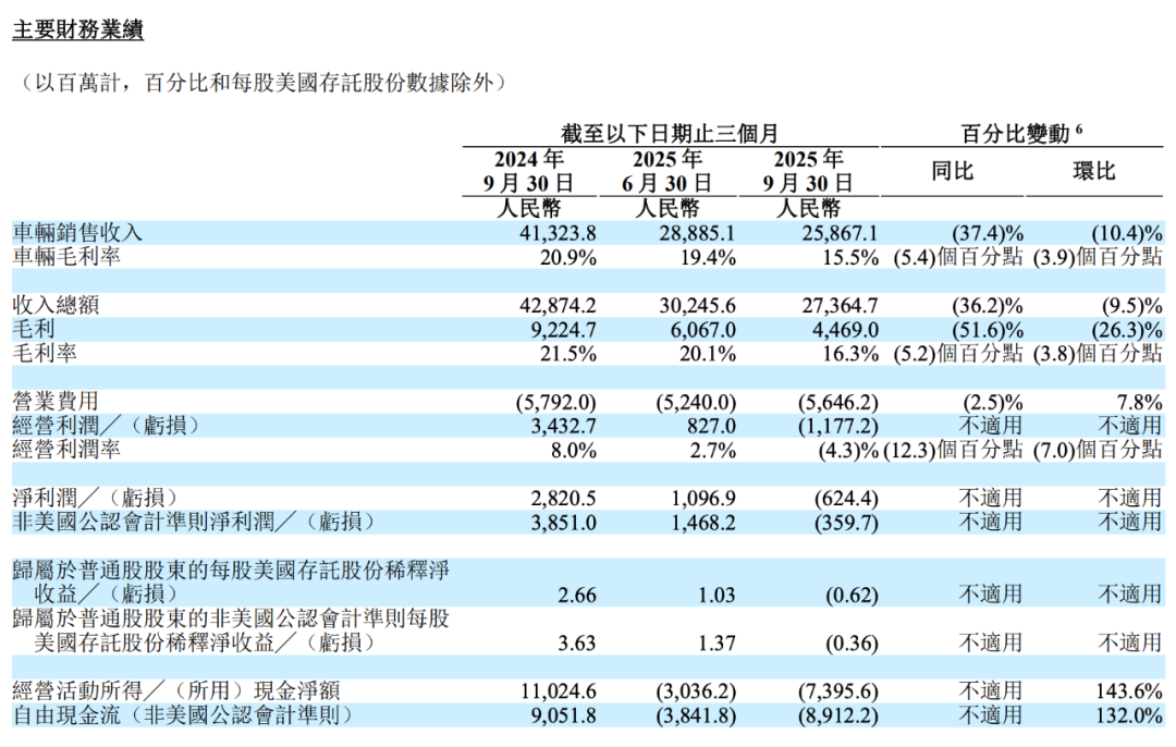 11月26日,理想汽车正式发布第三季度财报。财报显示,报告期内理想汽车实现营业收入274亿元,在新势力车企中保持领先。因10月底主动召回部分2024款理想MEGA并计入相关成本,导致三季度毛利率阶段性下行、当季出现亏损。剔除该影响后,理想汽车整体毛利率维持健康水平,为20.4%。截至三季度末,理想汽车现金储备为989亿元,为其纯电、智驾等核心领域的持续研发投入提供了保障。