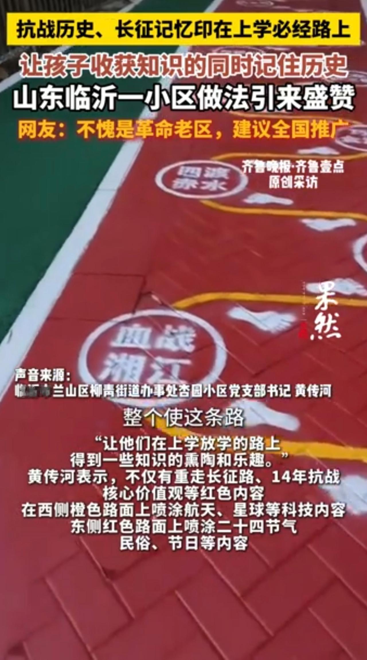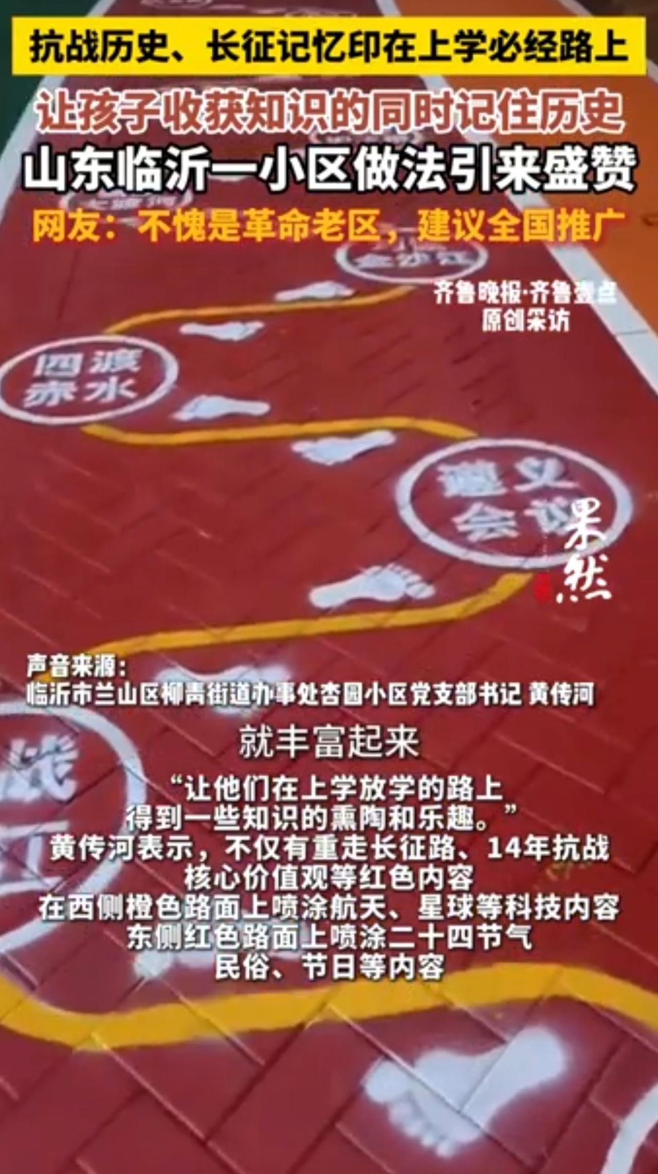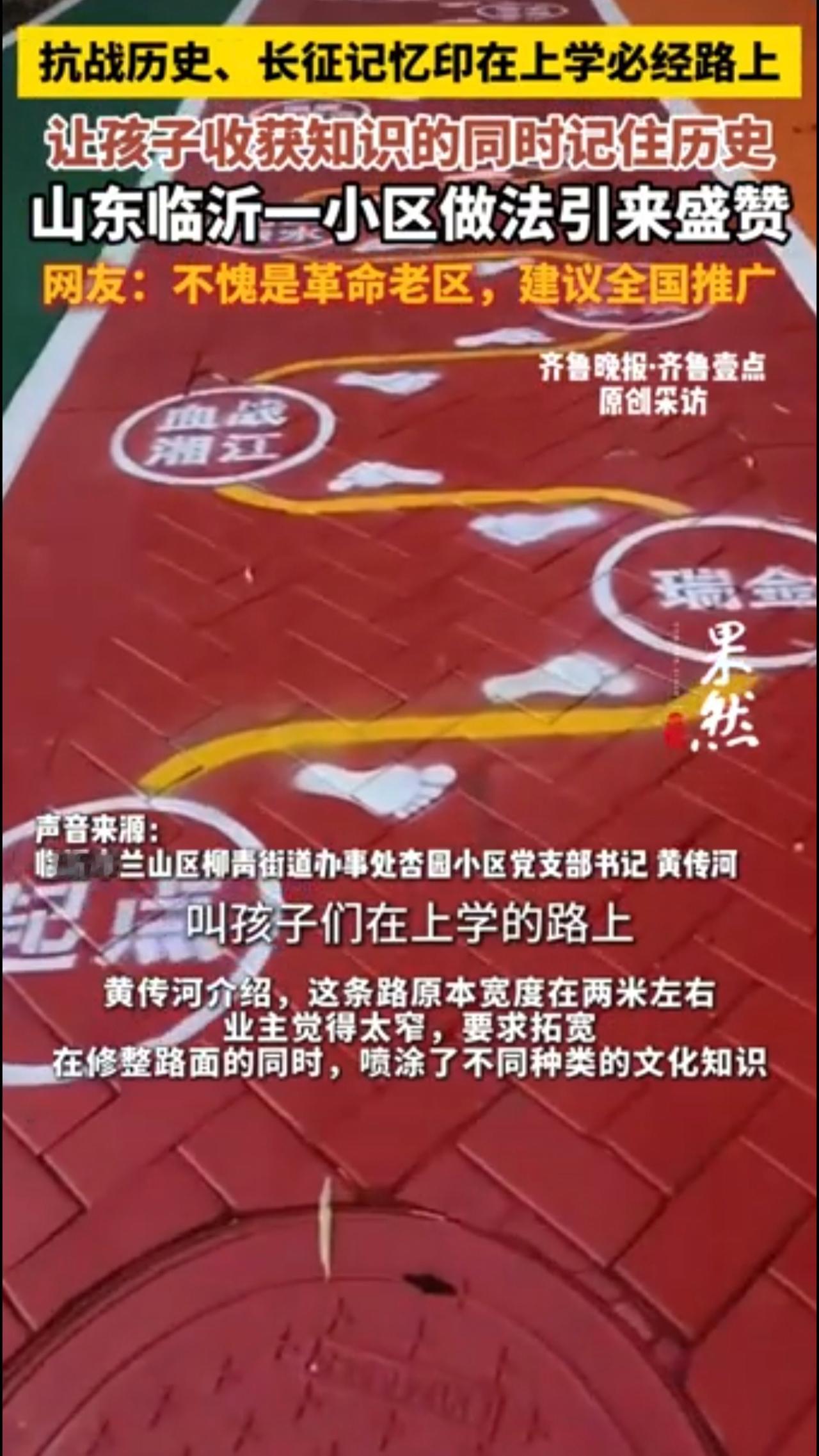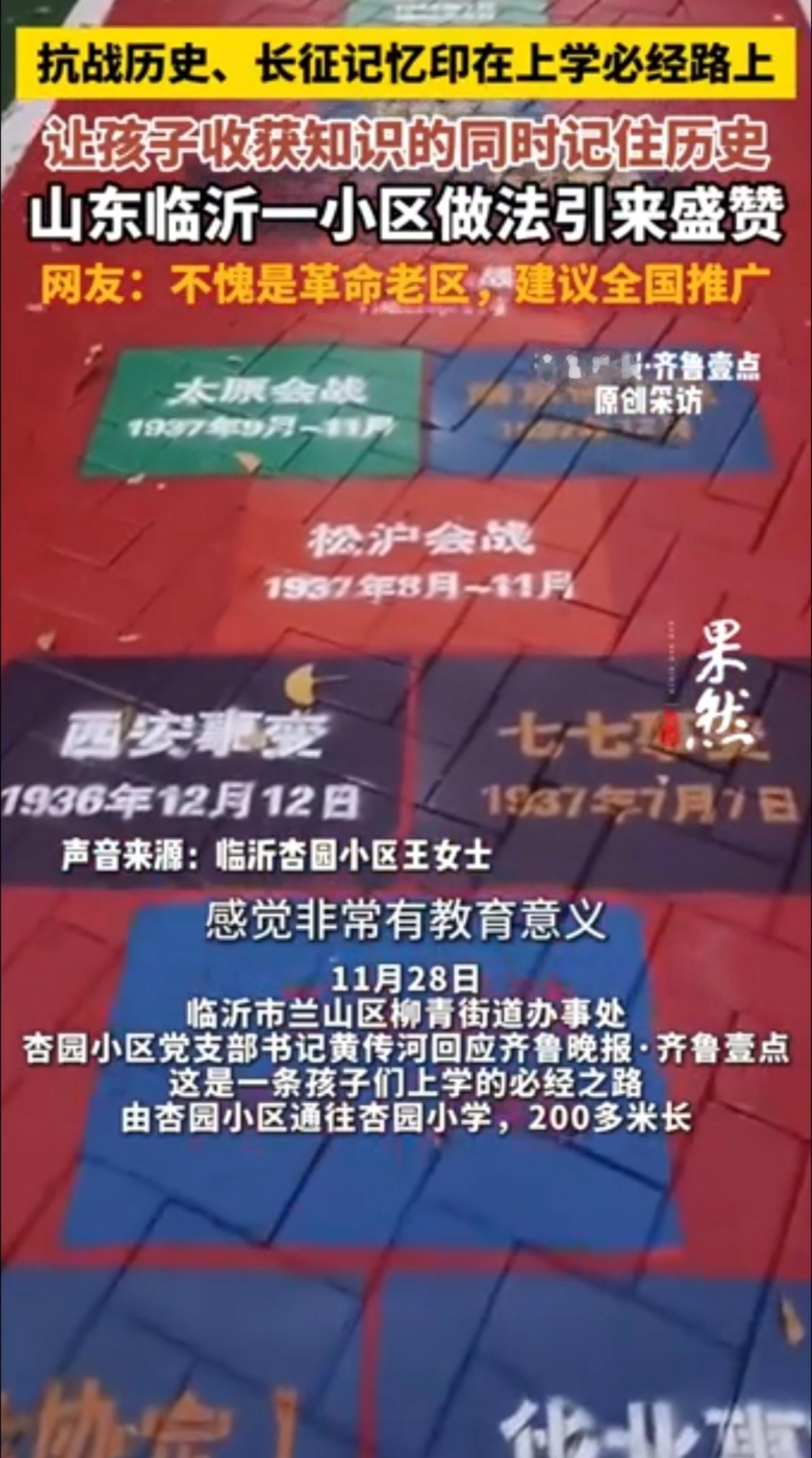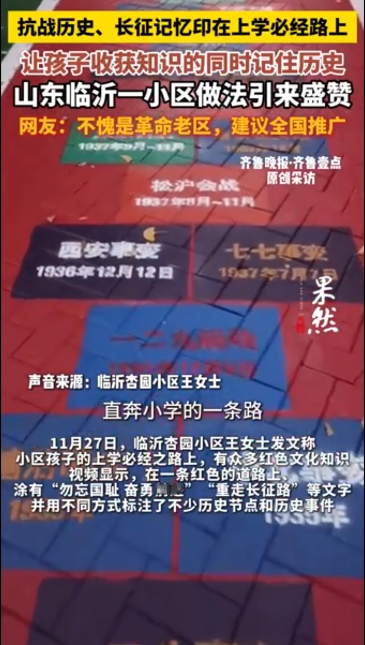 一小区步道上写满了历史!这是孩子们上学的必经之路,拍摄的住户说,每次经过都是在提醒自己铭记历史。网友纷纷点赞:建议全国推广!