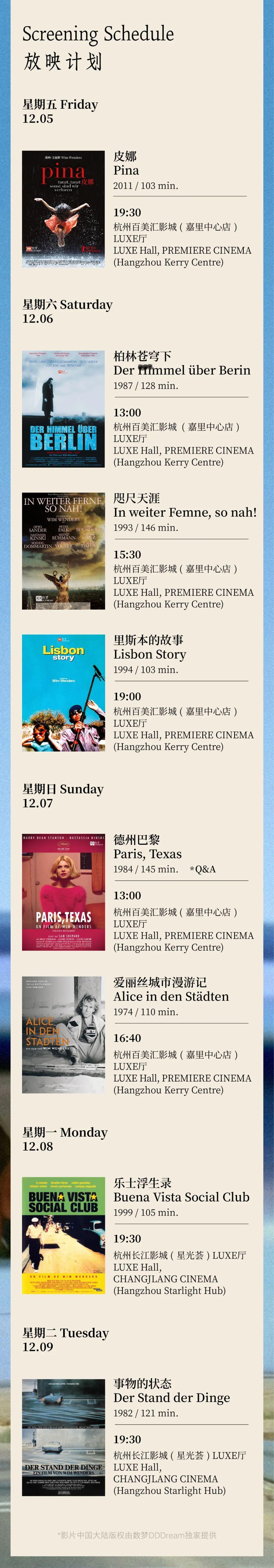 影展 观看的行为:文德斯电影精选展(杭州)排片表公布,文德斯还将亲临现场映后互动,12月3日(周三)12:00正式开票!