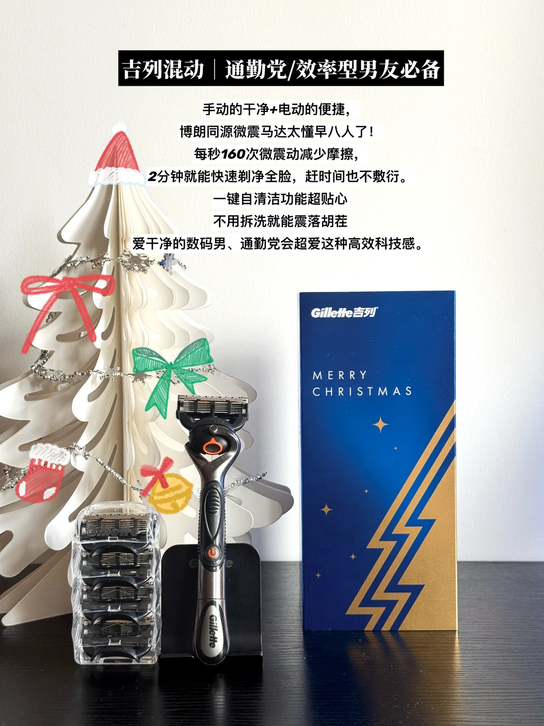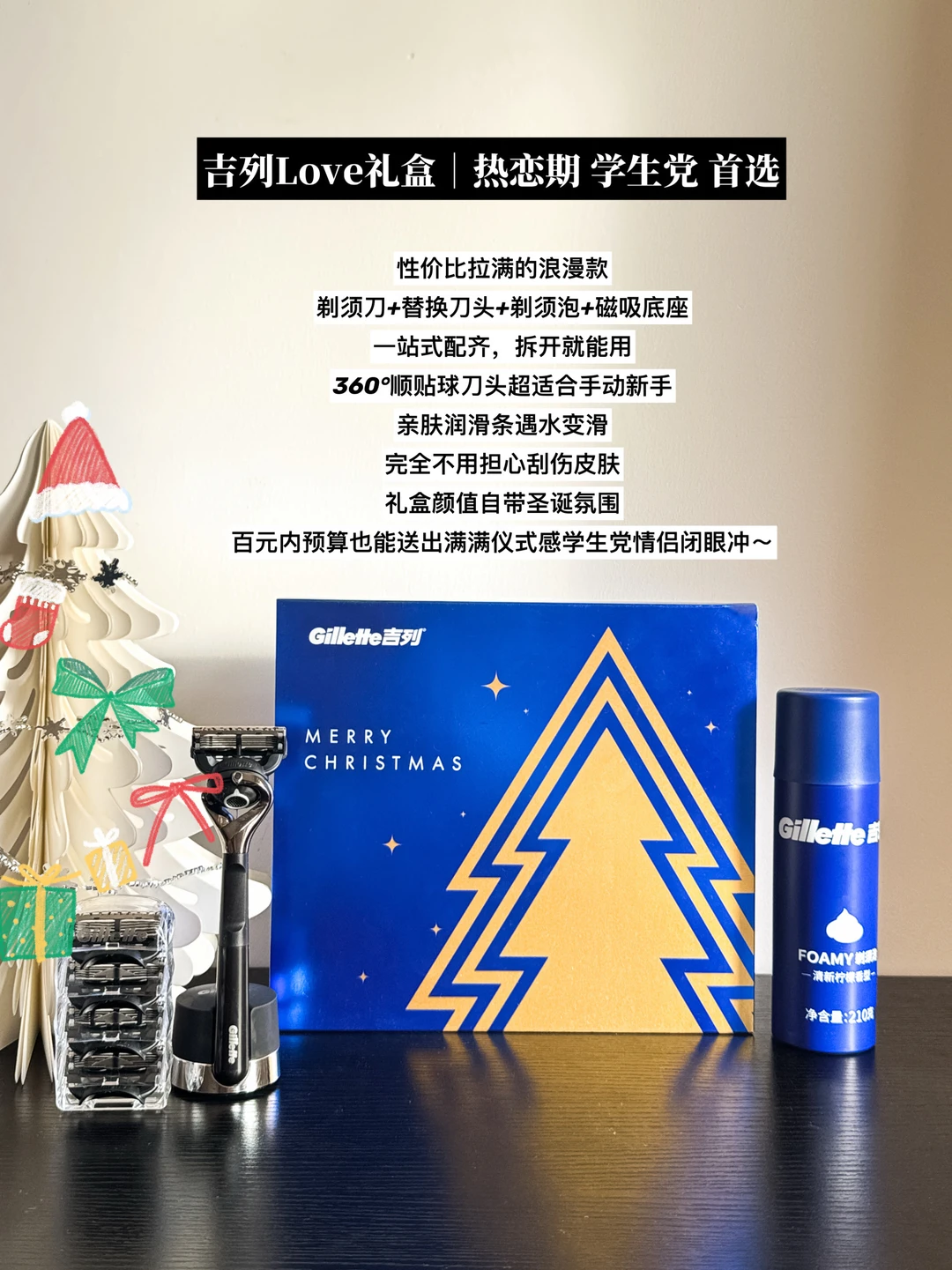 不管是热恋期的小情侣,还是在一起多年的伴侣,这种温柔的互动都能让感情升温。而且圣诞这种节日,两三百的预算就能买到吉列这种知名品牌,体面又实用,花小钱也能办大事~
