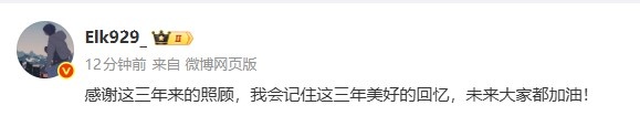 Elk:感谢这三年来的照顾 我会记住这美好的回忆 未来大家加油!