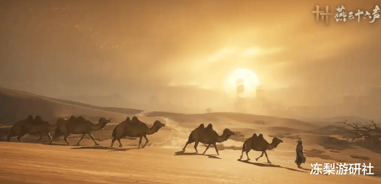 在网易的《燕云十六声》中,其“河西”地图从艺术意境、数字复现和文化精神三个层面,将敦煌的美学精髓融入了整个大漠江湖。例如,在凉州“酒泉镇”复现莫高窟第156窟《张议潮统军出行图》;从敦煌壁画与龟兹乐谱中汲取灵感,创作游戏原声等。
