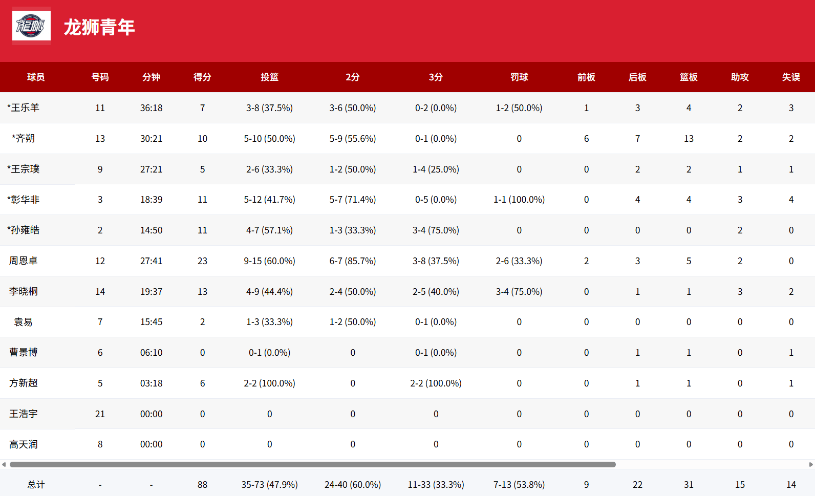 龙狮:周恩卓23分、李晓桐13分、彰华非11分