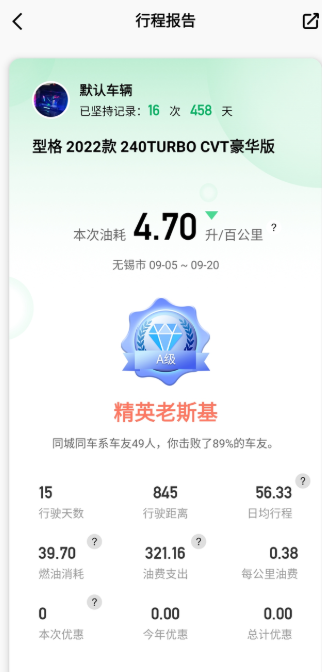 本田的表非常准,为什么总有人说快乐表。 本来里程A都是单次熄火清零,这次特意调整为加满清零。实际误差非常低!表上大概是4.65的样子。