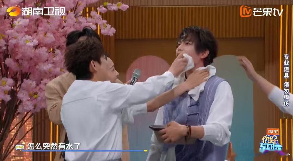丁禹兮喊话包租婆怎么突然有水了 丁禹兮模仿功夫名场面喊话包租婆 你好星期六 好六街泼水大战欢乐无限,水量如暴雨般猛烈来袭。丁禹兮模仿经典场景喊话包租婆,全员湿身,快乐氛围嗨翻天!丁禹兮