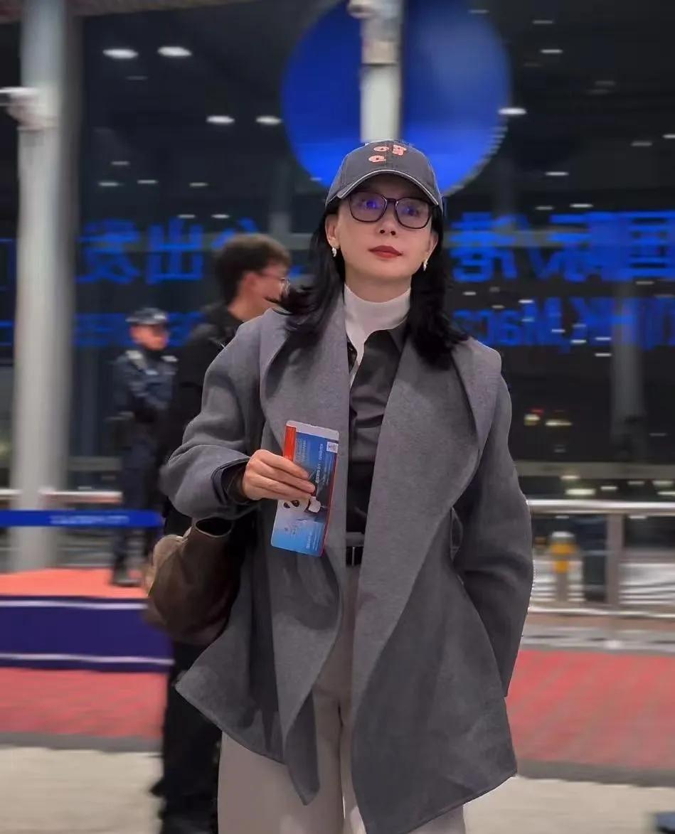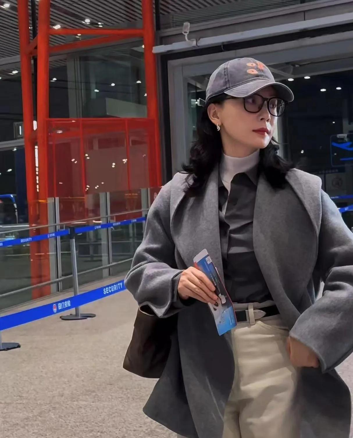 陈数这穿搭,把“中年优雅”焊在身上了! 陈数最新机场look太戳中年穿搭审美!灰色大衣叠穿衬衫+高领内搭,配浅卡其裤,简约高级又有层次,棒球帽+眼镜的搭配消解了严肃感,松弛又精致,这才是中年女性该有的时髦模板!