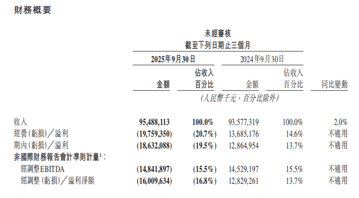 2025年第三季度,新业务分部收入同比增长15.9%至280亿元。分部经营亏损同比增加24.5%至人民币13亿元,经营亏损率环比改善2.5个百分点至4.6%。