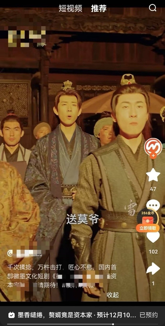 这部叫《墨香缱绻,赘婿竟是资本家》的短剧,看起来和杨紫的《家业》没啥区别,都以徽墨文化为背景的古装。这是第几部“撞脸”长剧的短剧了...