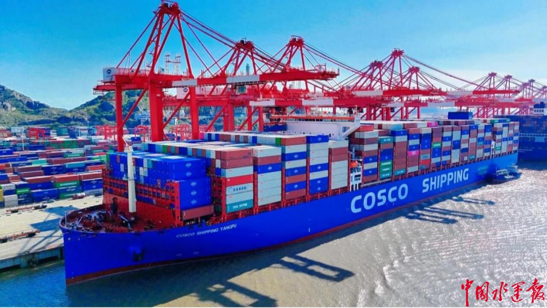 在扬州中远海运重工船坞现场,媒体团近距离参观了企业今年的重点产品——16000箱甲醇双燃料集装箱船。巨轮雏形初现,巍然屹立。“这艘船总长366米,型宽51米,最大装箱量16136标箱,在技术创新、绿色低碳、数字智能等多个维度达到了行业领先水平。”扬州中远海运重工党委副书记、副总经理蒋玉生向媒体团介绍,“它实现了第一艘由国内船厂建造、第一艘国内船东下单、第一艘采用国产主机的大型双燃料集装箱船三项国内第一。”一艘船,承载三重“第一”;一颗匠心,铸就中国制造的崭新名片。