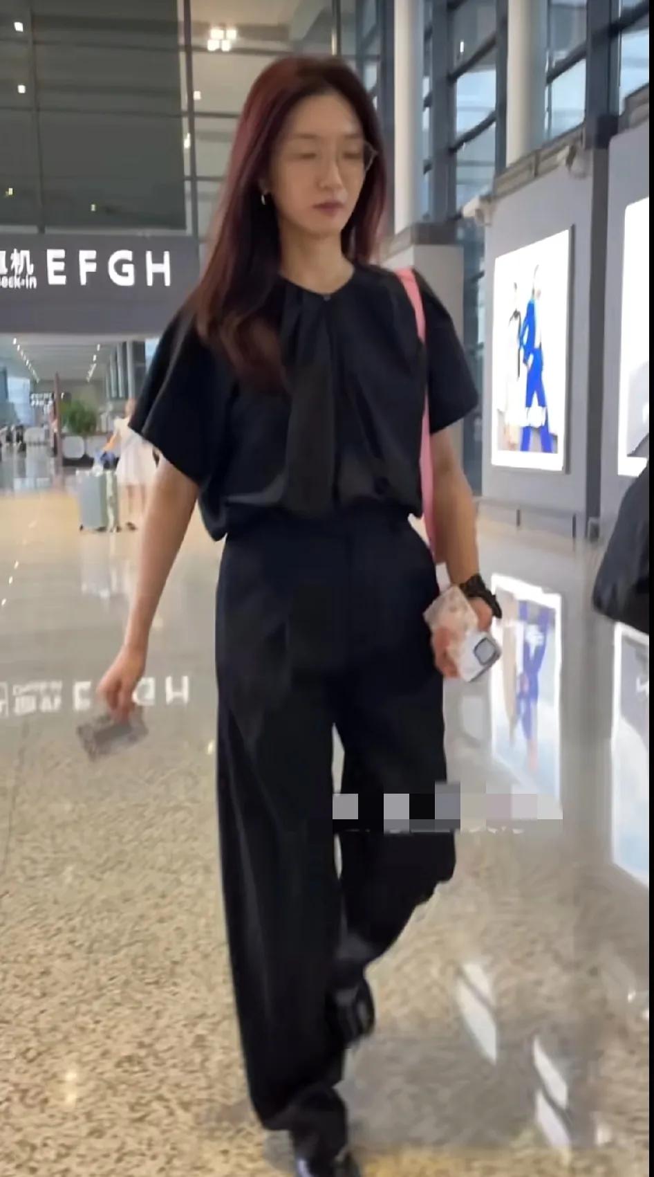 上海机场偶遇女星江疏影。本人太普通了,离开美颜滤镜,连普通人的颜值都不如,妆前妆