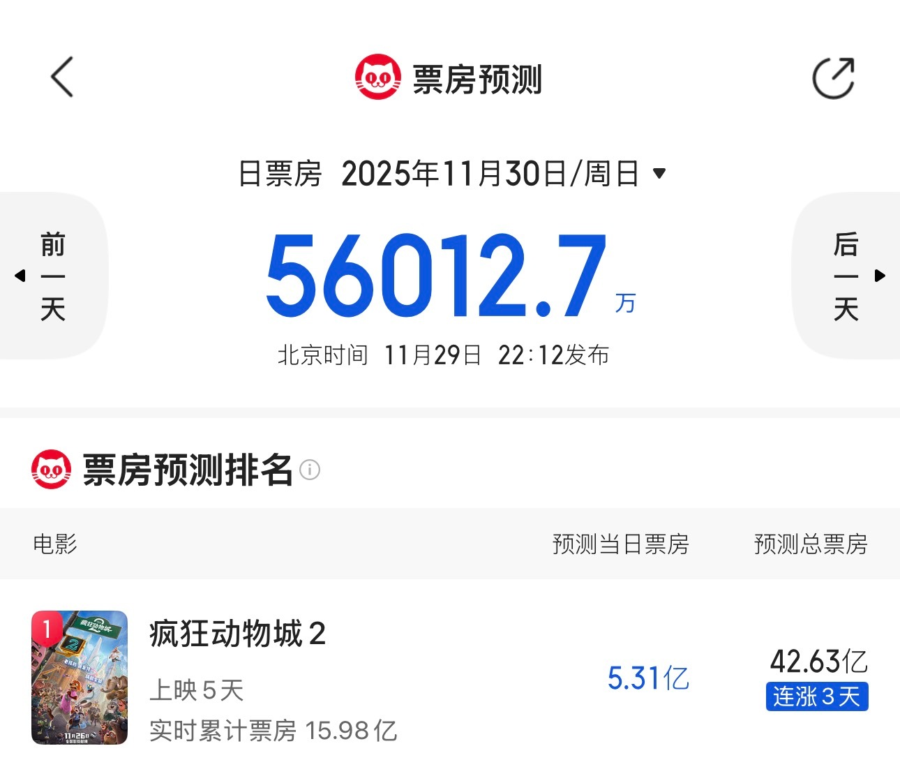 太猛了太猛了 单日1亿+美刀 要登顶进口片第一了我们Zootopia应得的还有Avatar希望卡导不要让我失望啊 今年老迪年末靠两部大IP翻盘了那就勉强当一个月迪吹(不是我之前说什么来着 从年初到年末动画电影干翻真人电影的一年 喜闻乐见