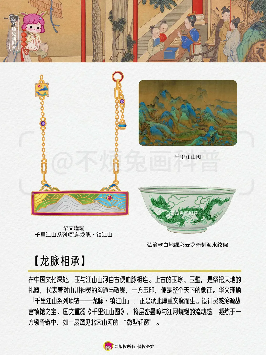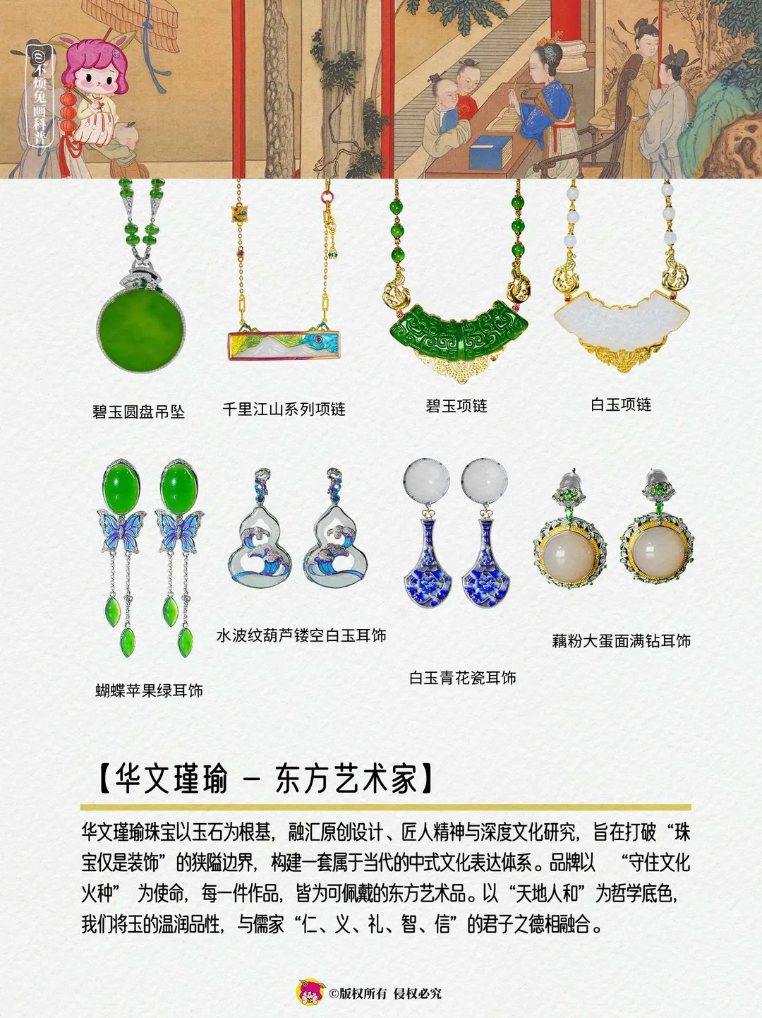 🔴在古人眼中,玉为山川菁英,以玉德喻人德,暗合了中国人固有的“天人合一”观念。玉,远不止于一块美丽的石头。它凝天地之精华,聚日月之灵气,是品德、权力、财富与信仰的化身。古人爱玉,爱的不仅是其温润坚韧的质感,更是其背后“君子比德于玉”的深刻内涵。 - 🔴华文瑾瑜珠宝,深谙此道,对传统玉石文化的敬畏与创新,以玉石为文化载体,通过原创设计、匠人合作与文化研究,打破“珠宝仅为饰品”的边界,构建起一套属于当代人的中式文化表达体系,致力于打造东方艺术家•每一件,都是艺术品。 -