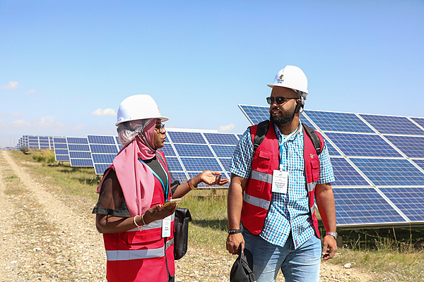 2025年9月12日,青海海南州,第九届中非青年大联欢代表团和非洲记者团一行来到世界最大装机容量的光伏发电园区。视觉中国
