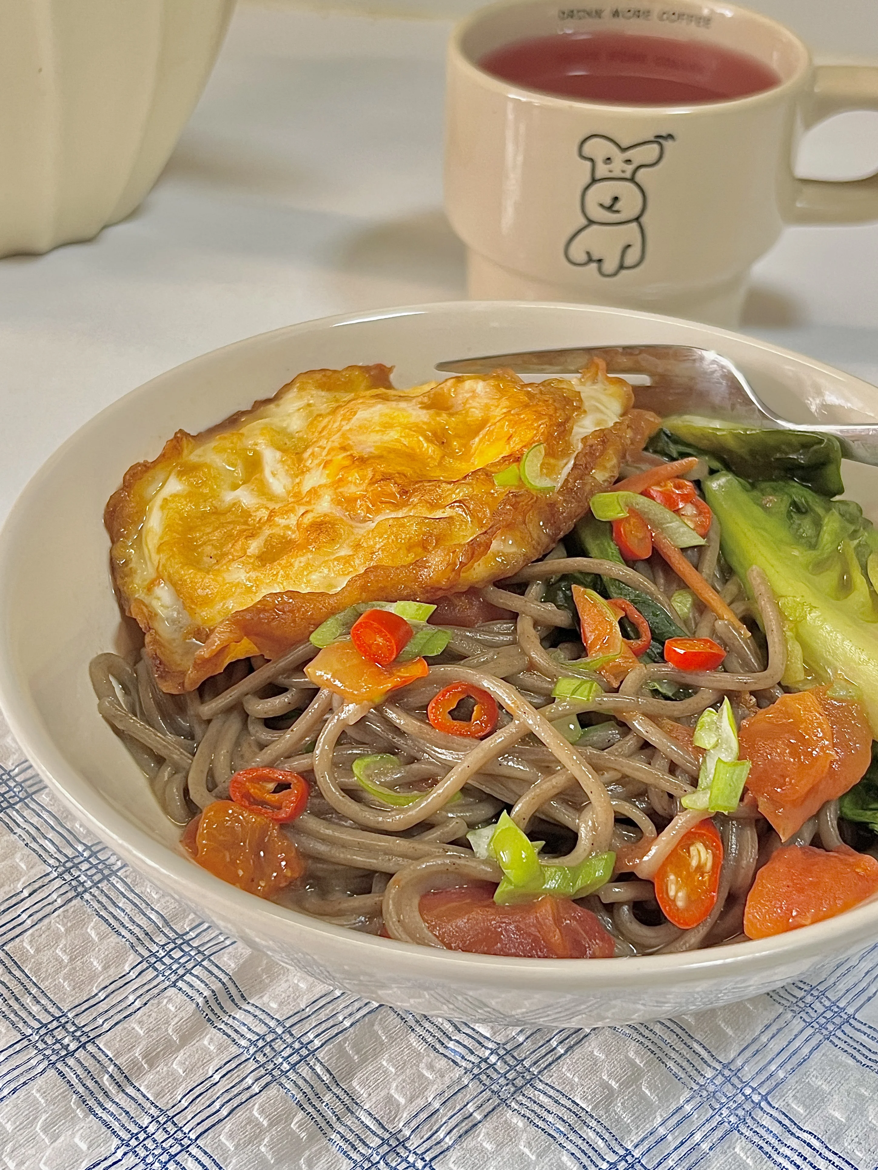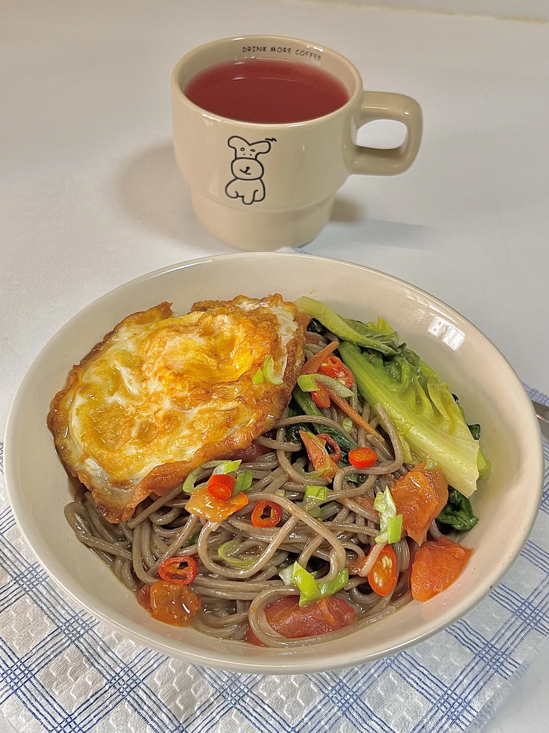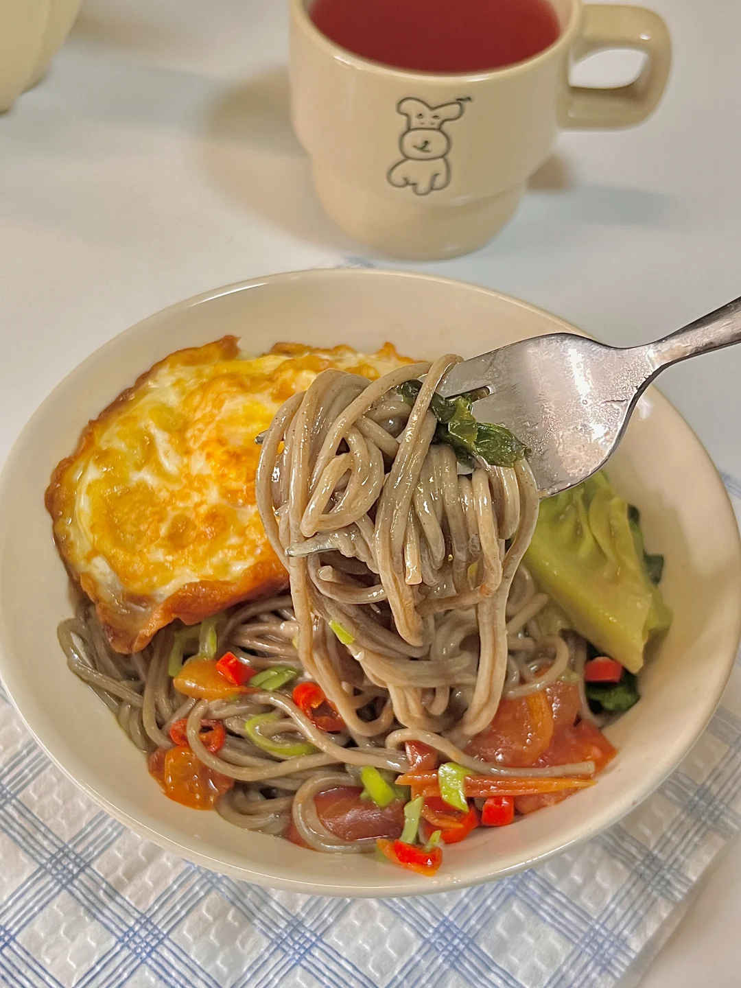 我家的春天真好吃 快乐减脂🍅番茄荷包蛋焖荞麦面真好吃😋清爽又入味 面条裹满浓郁的番茄汁,每一口都好满足~ 食材🥬:番茄🍅荞麦面 煎荷包蛋 葱蒜 小米辣 做法再图上⬆️简单好吃😋快去试试吧~