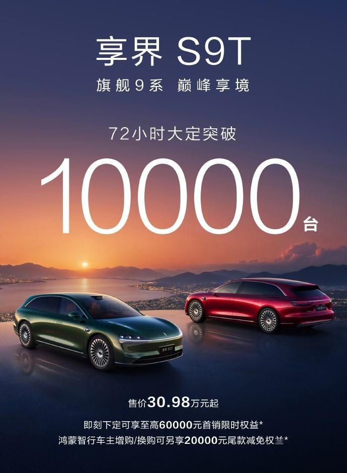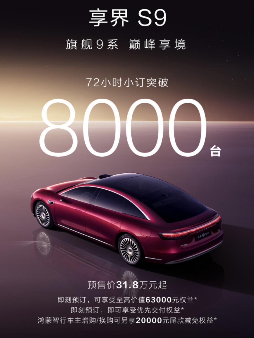 炸裂!新款S9 72小时大定突破8000台。享界S9T+新款S9月销量超过1.5