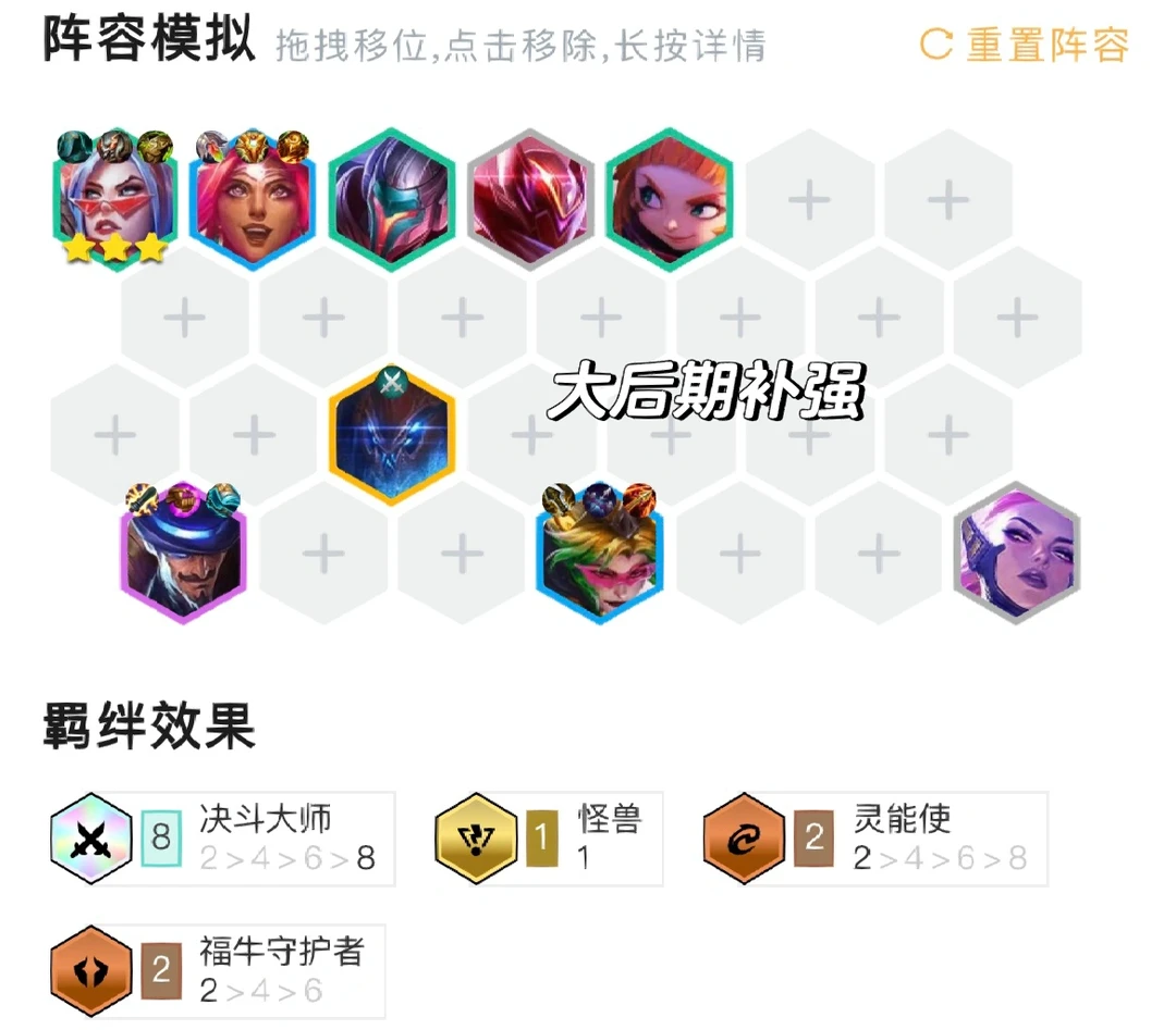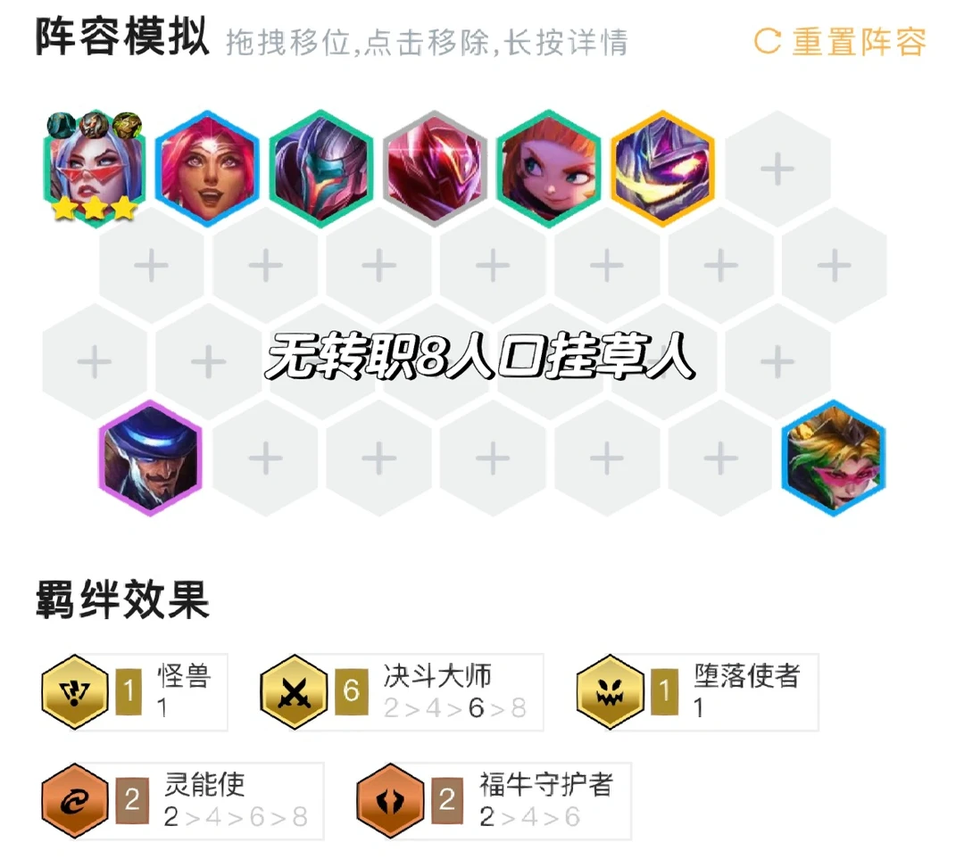 这套阵容锁血能力很强,连胜连败都能玩,关键是看有没有强化和能不能开8决。