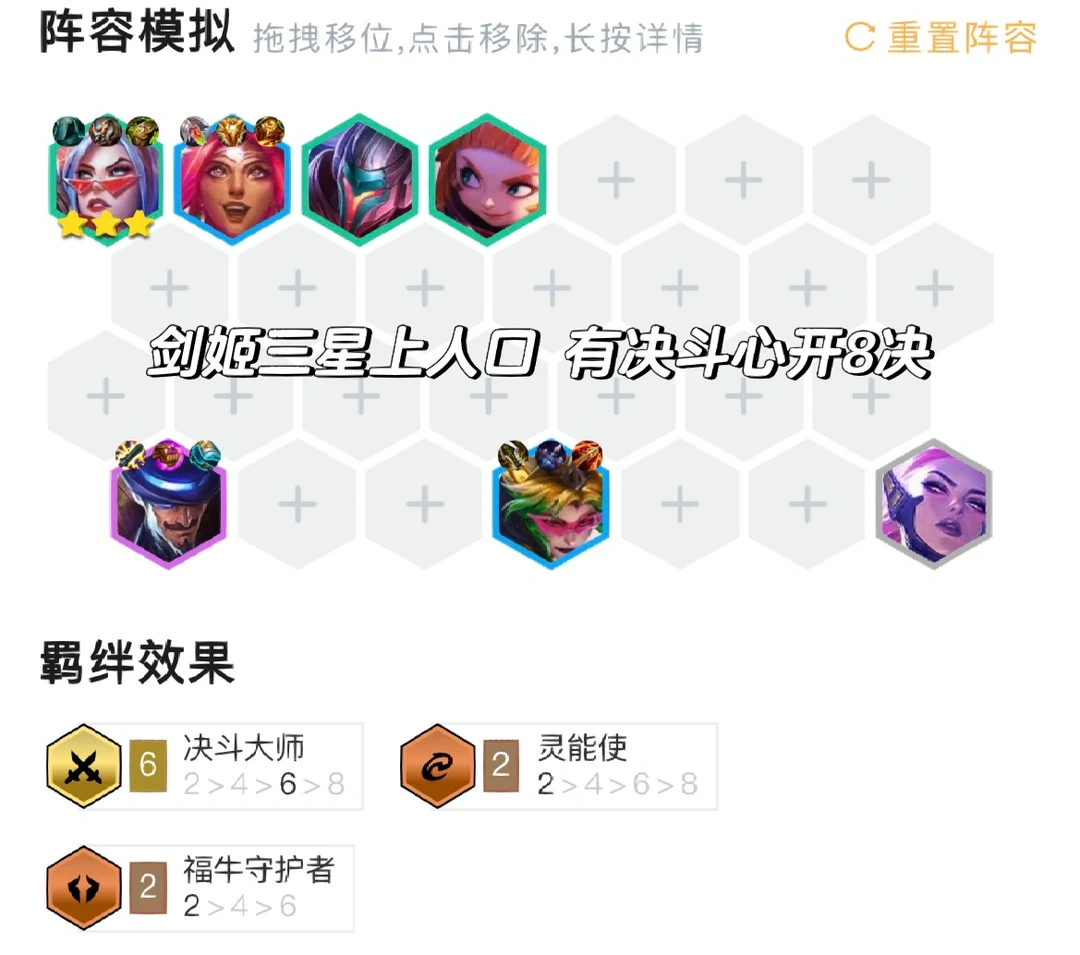 剑姬三星后上7人口再上8人口,能开出8决几乎都锁定前二了。