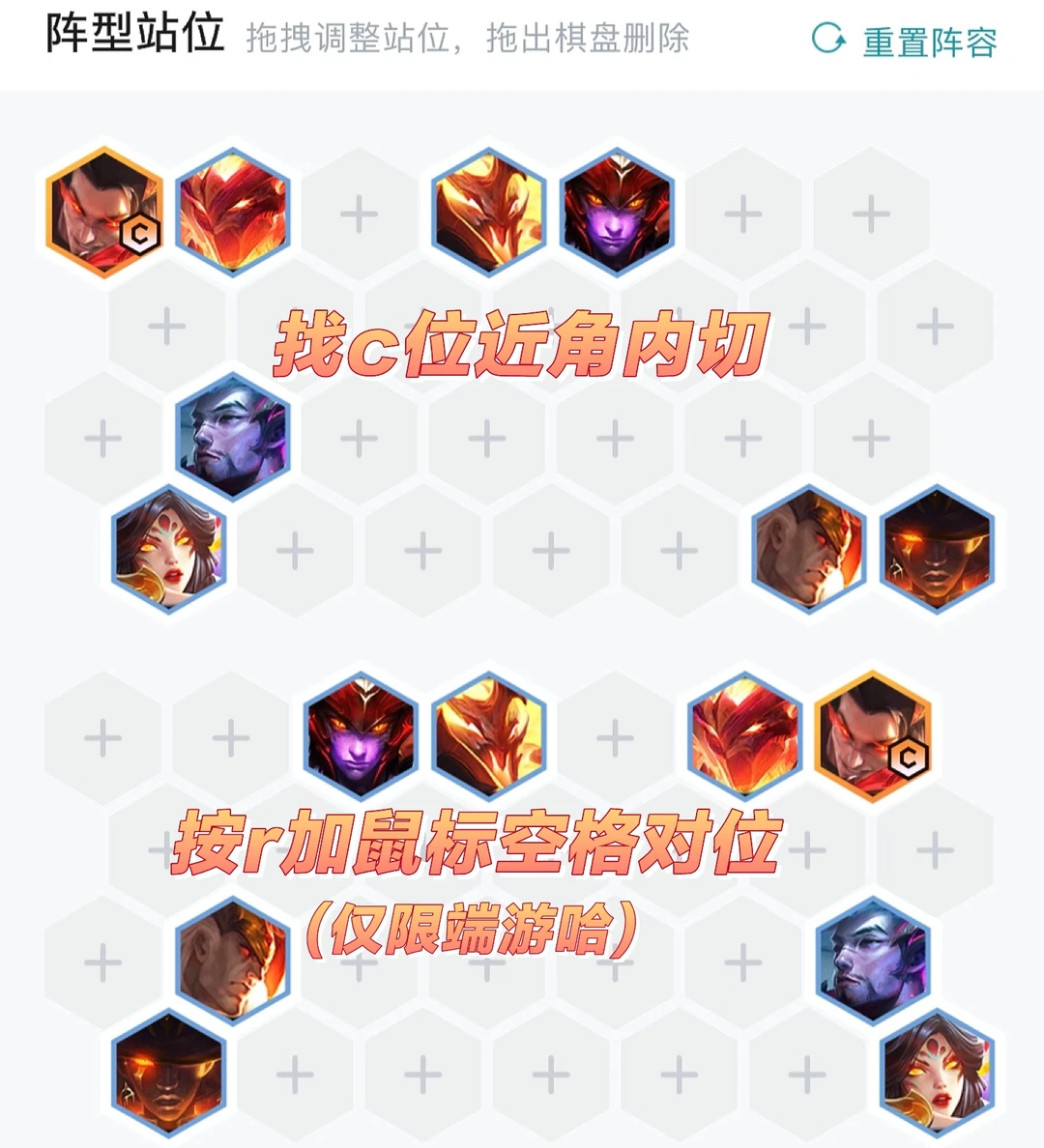 只要移动腕豪和慎就行,这套阵容必须对位对面的C位。需要从薄弱处内切,能否和对面C位近角站位,是团战的关键。