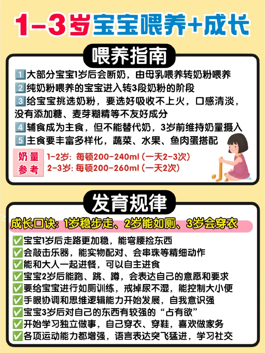1岁稳步走、2岁会如厕、3岁会穿衣