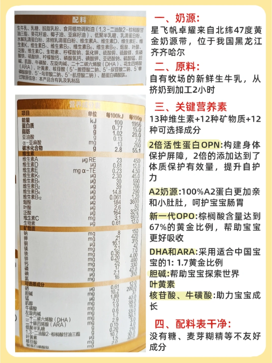 💯自护力 : 飞鹤星飞帆卓耀里面含2倍的OPN!这种成分比大家所熟悉的乳铁蛋白还珍贵,能激发宝宝天生的自护力