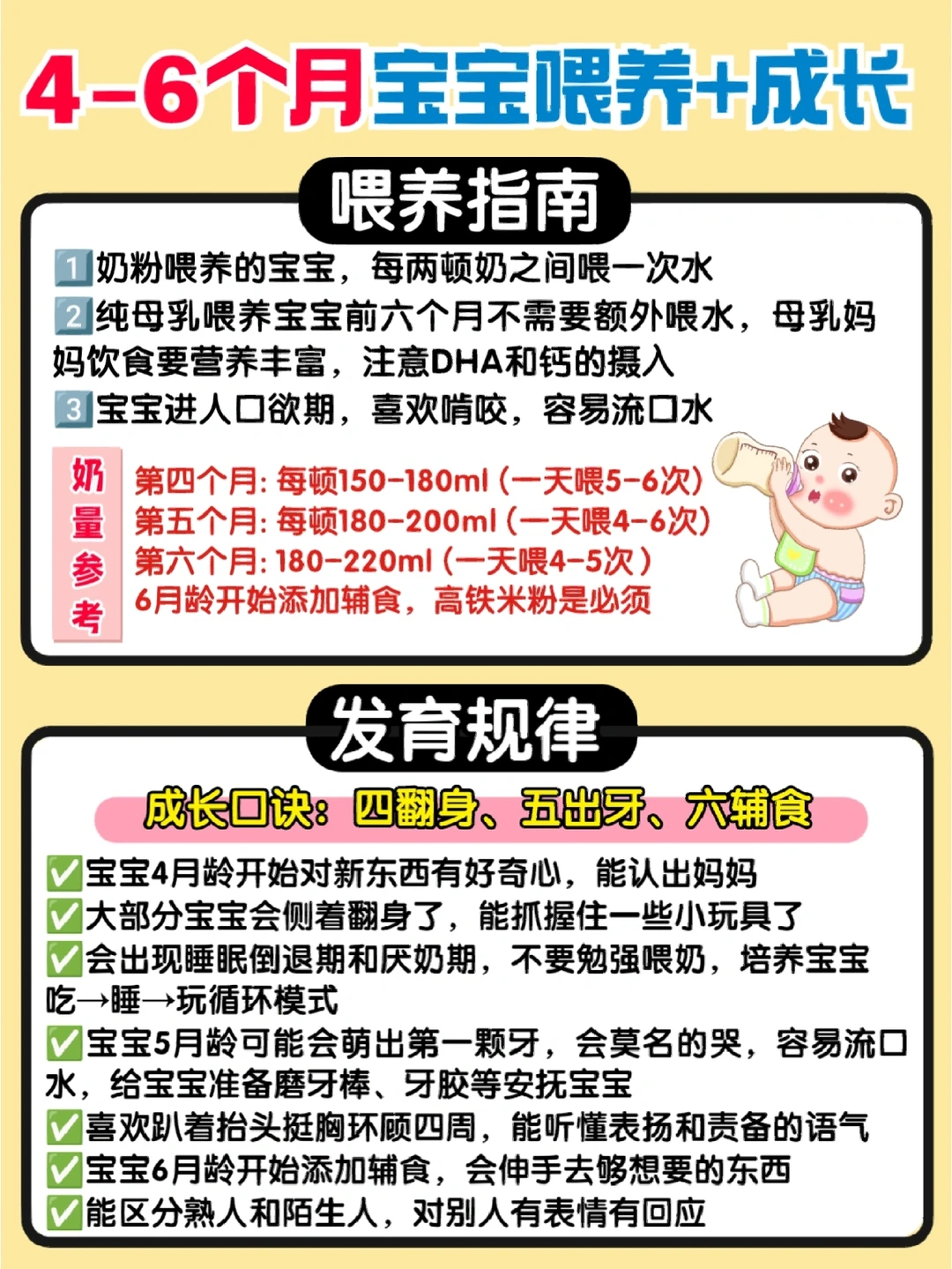 💁♀️宝宝刚出生的时候,胃容量很小,等到1-6个月才会慢慢变大,要逐渐形成有规律的喂养。(图1-4有0-3岁宝宝详细的喂养指南)