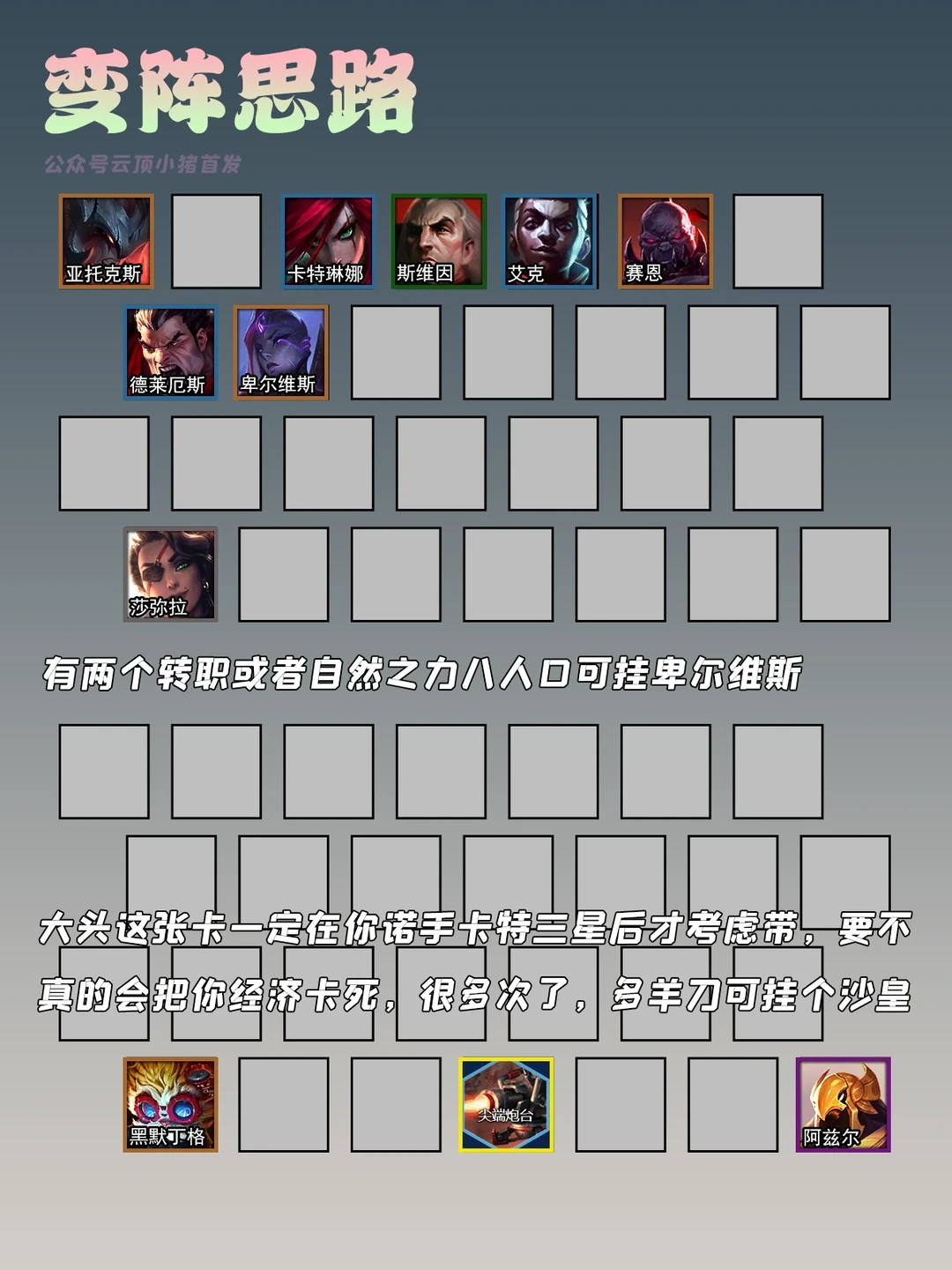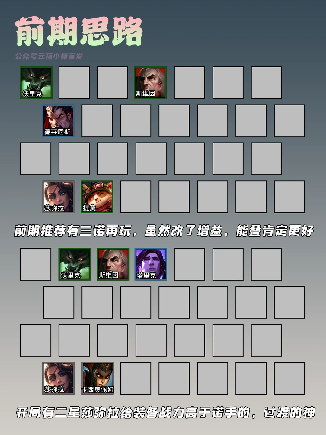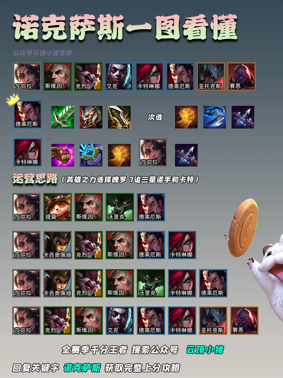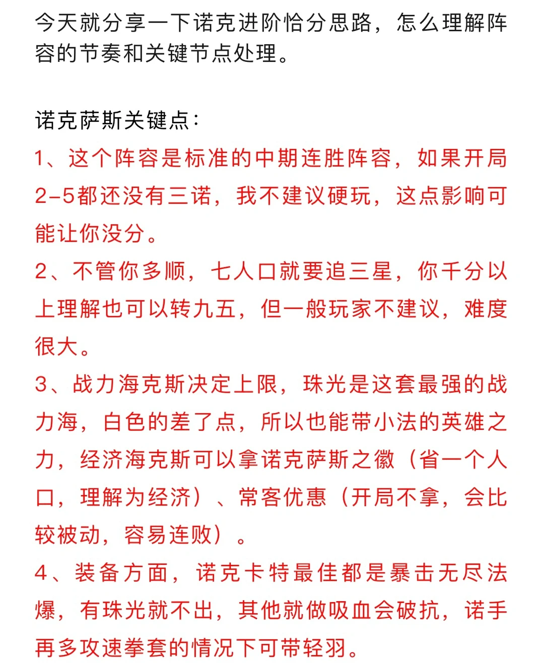 [偷笑R]诺克萨斯我觉得一直觉得是最强的三费上分阵容,今天就分享一下诺克进阶恰分思路,怎么理解阵容的节奏和关键节点处理。