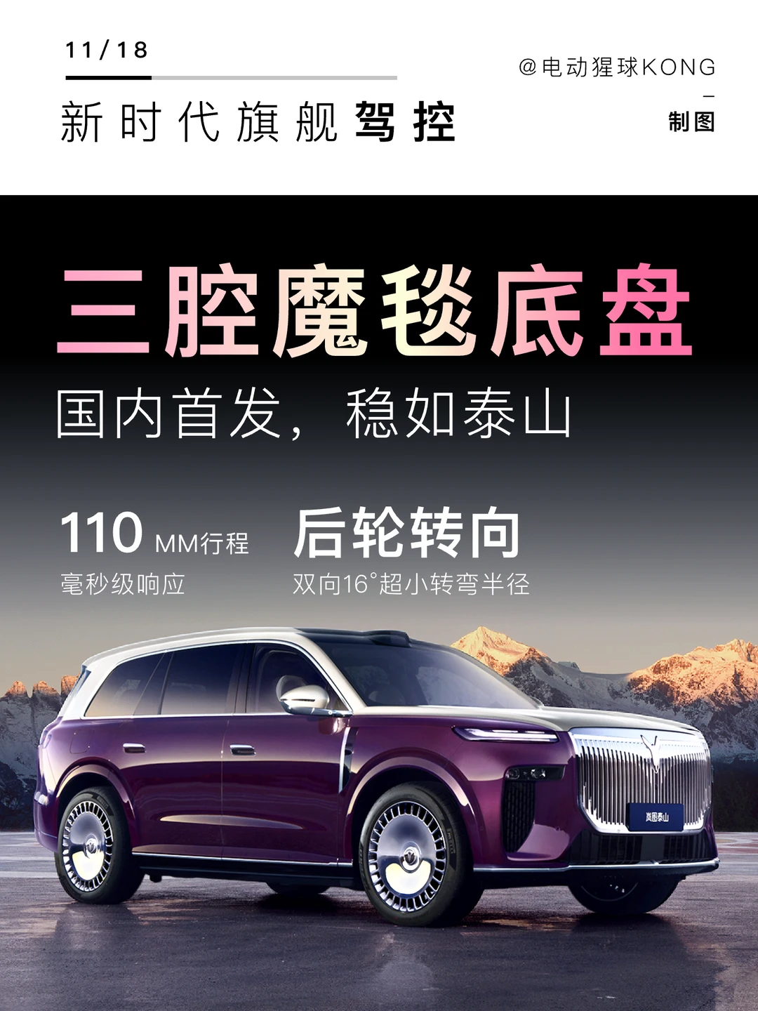 岚图旗舰大六座泰山上市,价格37.99万起,这辆车含华量相当高,发布会总结来了: 👑旗舰定位 问界M9同款尺寸、同款华为乾崑ADS 4辅助驾驶、华为的投影大灯,鸿蒙座舱都是同款,除此之外对上问界M9有何优势? 1️⃣三腔空悬 目前在国产车上是独一家,强如M9也是两腔空悬,之前只在超豪油车上配备,比如:GLS的高配、A8的顶配、揽胜的顶配,单腔只能调高低,双腔可调节高低和软硬,三腔能实现更精细的四档刚度(舒适、标准、运动、极限) 也就是说:三腔不仅更舒适,驾控表现也更好 这套悬架行程达到110mm,标准状态下,上下可分别调节55mm(M9为±40mm),过马路牙子、越野场景就更从容了 最关键的是:以上配置,全部标配 中配以上还配备双向16°的后轮转向,5.2 米的大车转弯半径才5.4 米,停车入库、狭窄地段掉头都很轻松 2️⃣大电池插混 采用65度大电池,CLTC纯电续航370km,问界M9增程版电池为52度,纯电续航最大290km,日常没有用“油”焦虑,通勤当纯电车用,长途回个老家、出个差,节假日也不用排队充电了,直接一路开回去 并且终于支持800V的5C快充了,问界M9增程版为400V平台,服务区上个厕所的功夫,回来就能充上200多公里 大电池和800V是的新方向,长途日常全都要 3️⃣AI云舒座椅 每个人的体态不一样,乘坐需求也不一样,泰山运用AI技术,结合66颗传感器,能给不同乘客调节出最适合的座椅,这个功能很实用 4️⃣大四座模式 二排可横向调节,扶手增加小屏幕,一键将座椅靠拢,切换成4座模式,车内接待客户也太尊了,日常使用6座模式家用也很实用,买一辆车2个场景都能轻松应对 💡总的看下来,泰山的华为全家桶加上底盘悬架黑科技,的确不错,问界M9固然好,但46.98万起的售价,选个好点的配置就得近60个,泰山37.99万起的售价诚意不错,对于喜欢华系的车主来说,配置还一步给到位了 手握50个W,你会怎么选?