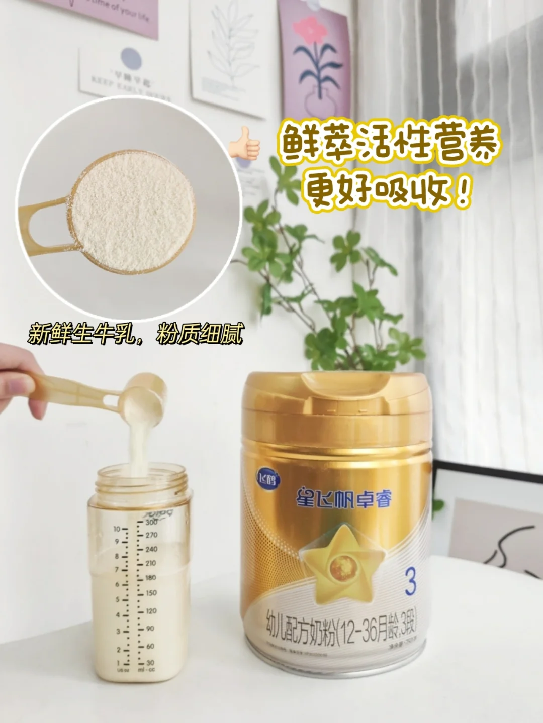 ✔原料也是新鲜的生牛乳,能更好的保留牛奶中的营养,更加新鲜,好溶解易冲泡,整体口味清淡,宝宝很喜欢🍼~