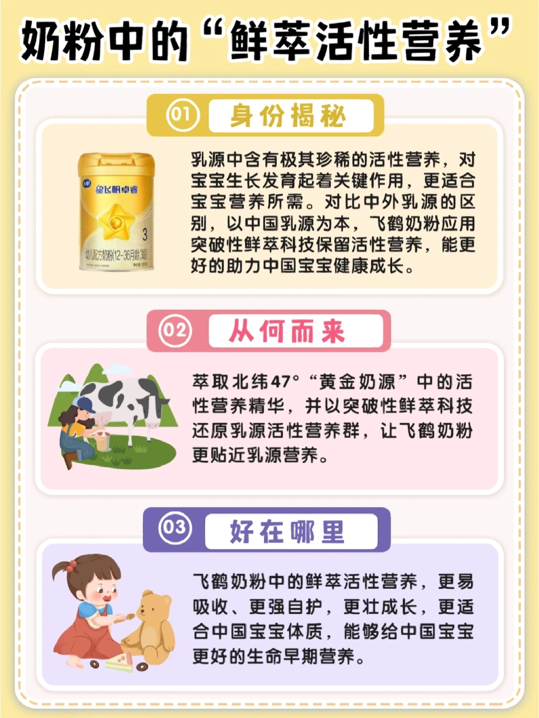 ✔奶源是来自北纬47度黄金奶源带,还被官方认证为“中国婴幼儿奶源地黄金产区”,更适合中国宝宝体质!