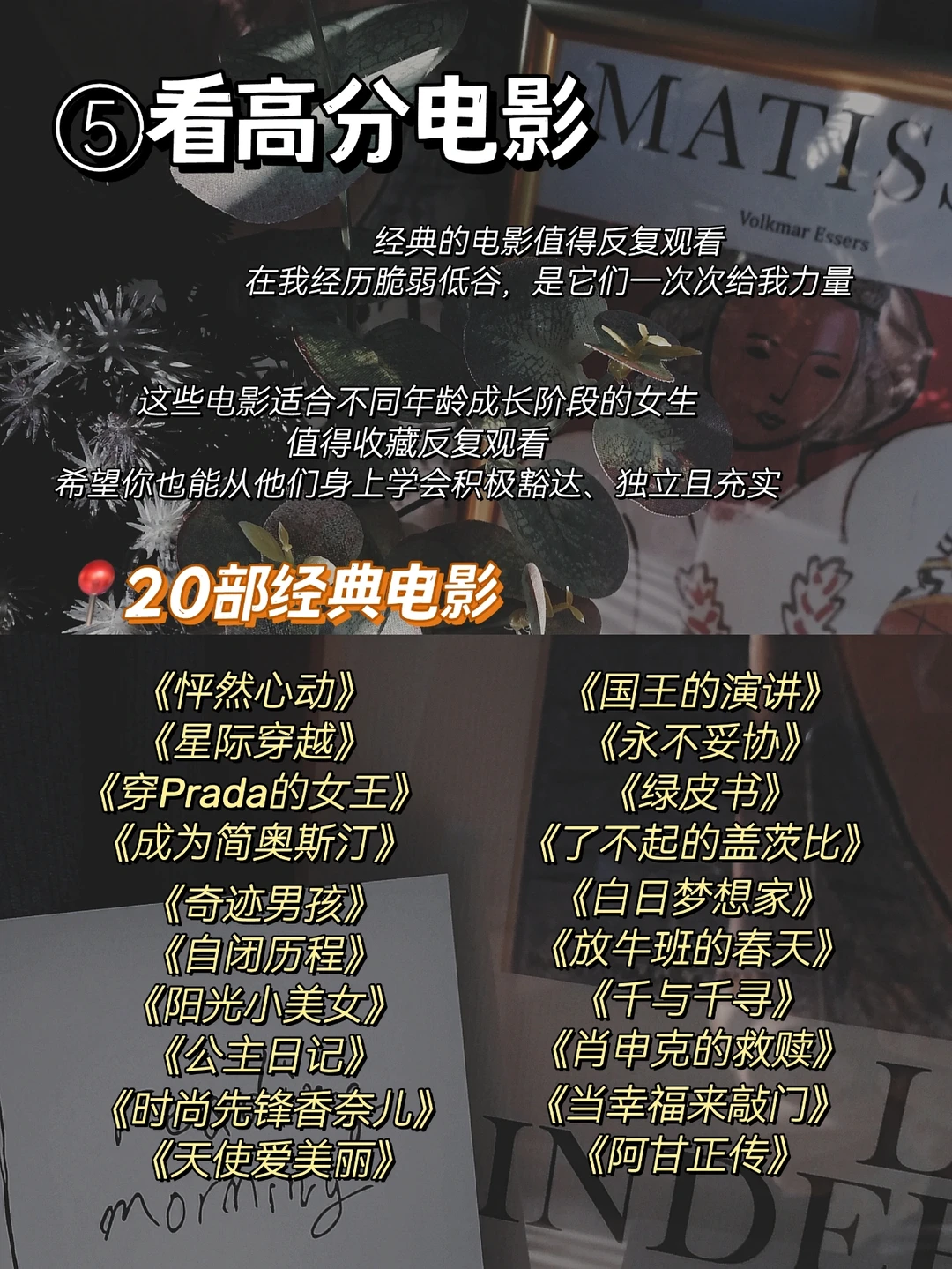 5⃣看经典电影:好电影值得反复看,每次看都会有不同的感悟。
