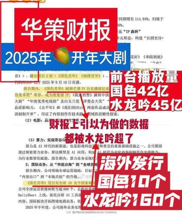如果说芒果前端播放量不具备参考性的话,那为什么国色芳华第二部招商要用这个数据,上画策财报的时候也用了这个数据呀。国色的云合和芒果前端严重不符是事实啊。