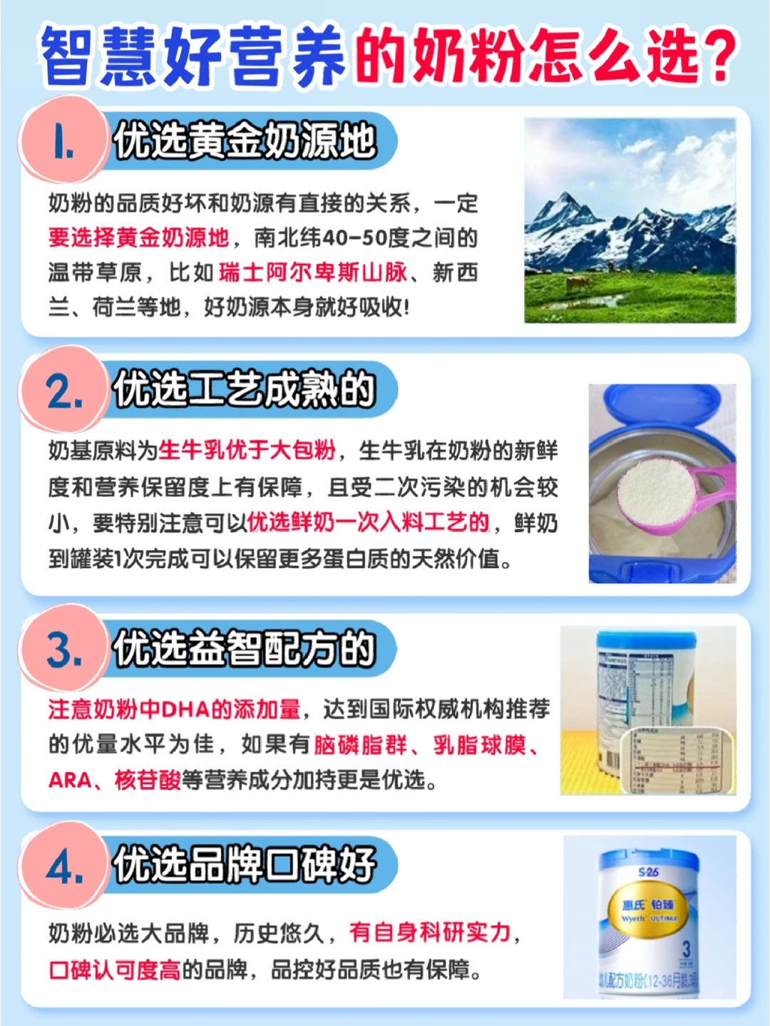 4.挑选一款含有关键营养且好吸收的奶粉