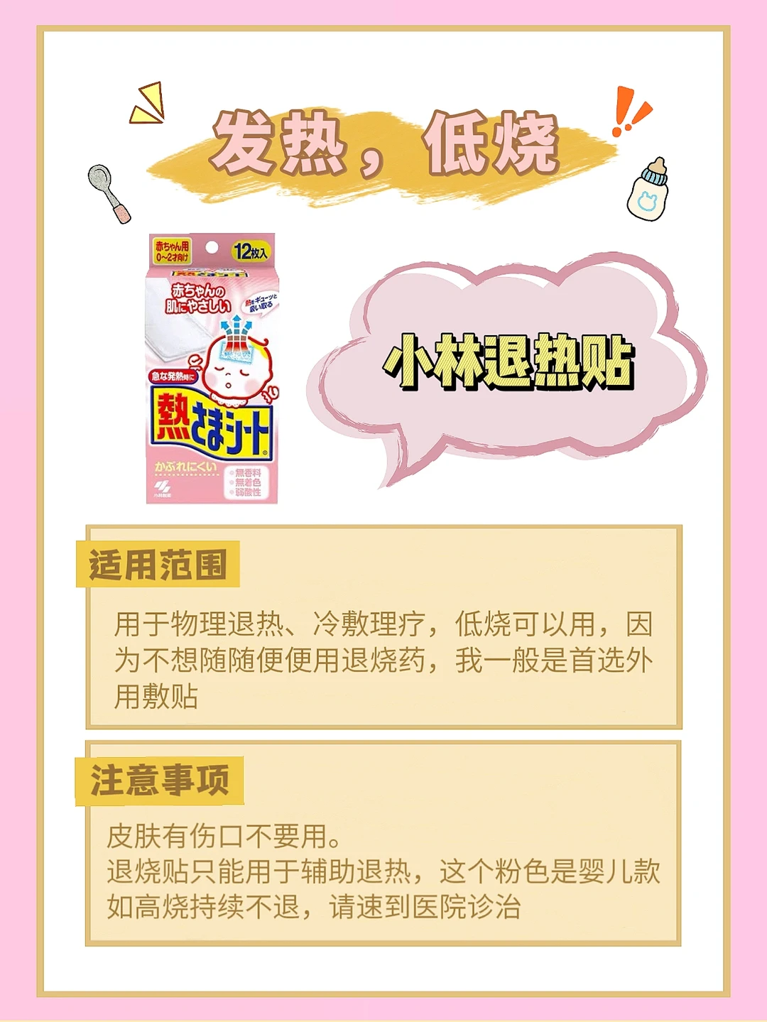 ▪️宝宝体温38.5°C且精神状态佳的情况下,可给宝宝贴小林退 热贴,温水擦浴,多喝水。