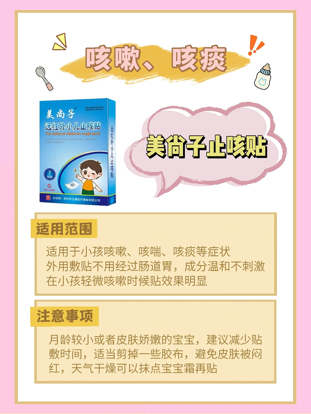 ▪️美尚子止 咳贴:这个是外用敷贴的,不经过胃肠道,小孩刚一咳嗽就贴这个,很管用。