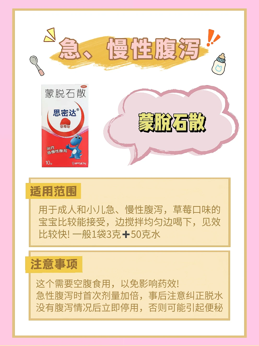 ▪️宝宝急慢性腹泻:蒙脱石散,止泻快,一旦腹泻好转马上停止服用!