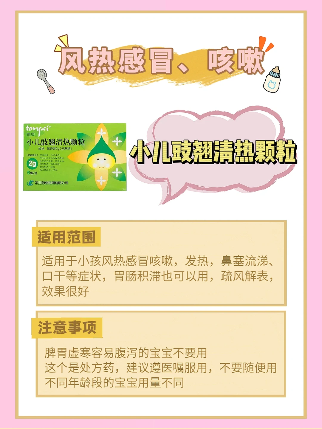 ▪️风热感冒:小儿豉翘清热颗粒,副作用小,效果好