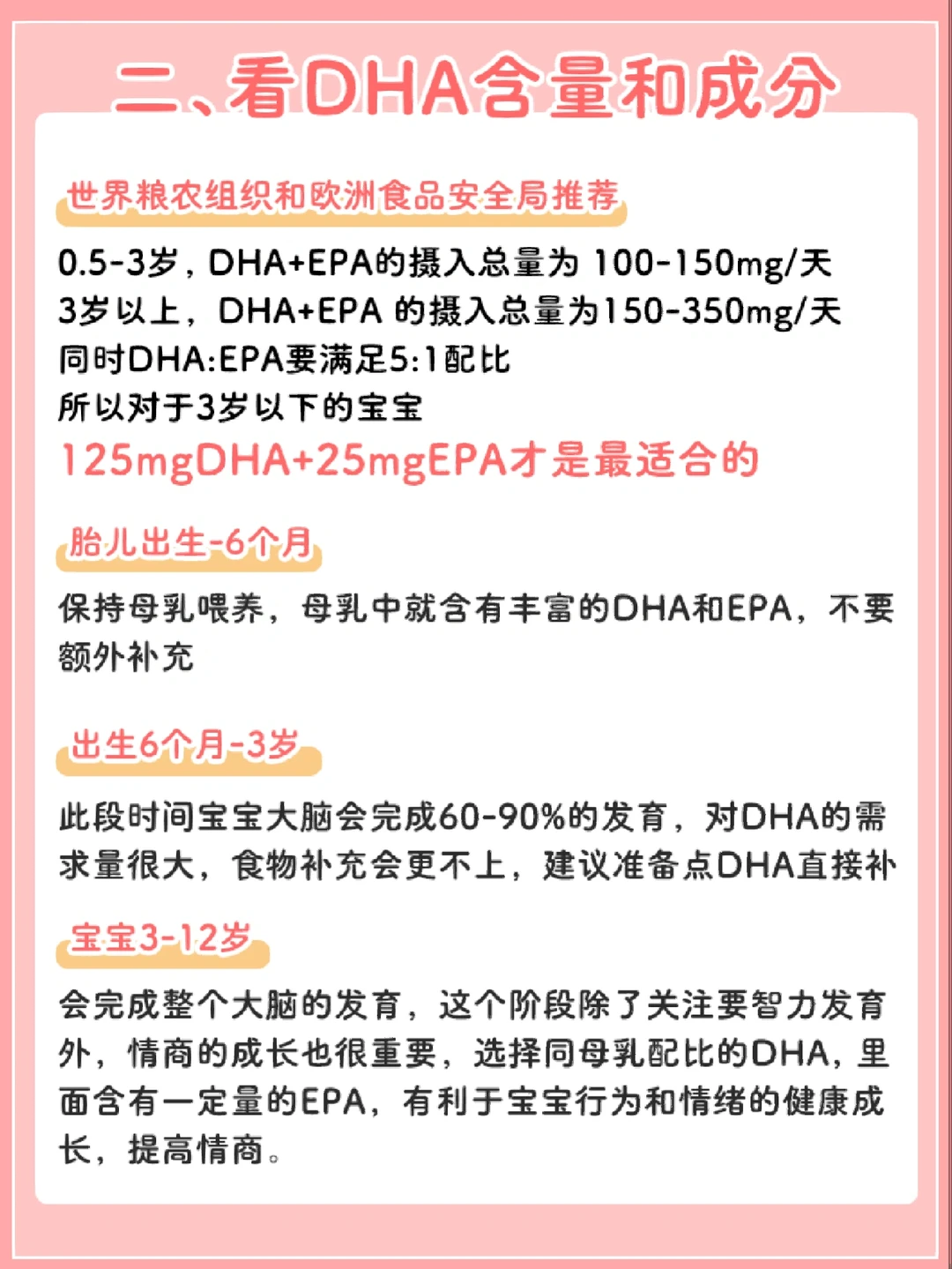 ✅婴儿吸收的母乳当中DHA:EPA比例为5:1,也就是说对于3岁以下的宝宝,选择含量125mgDHA+25mgEPA蕞合适