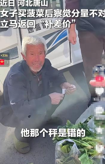 河北唐山,女子买了2斤菠菜,回家一称立即返回找到卖菜大爷,说:大爷,你这秤不对!
