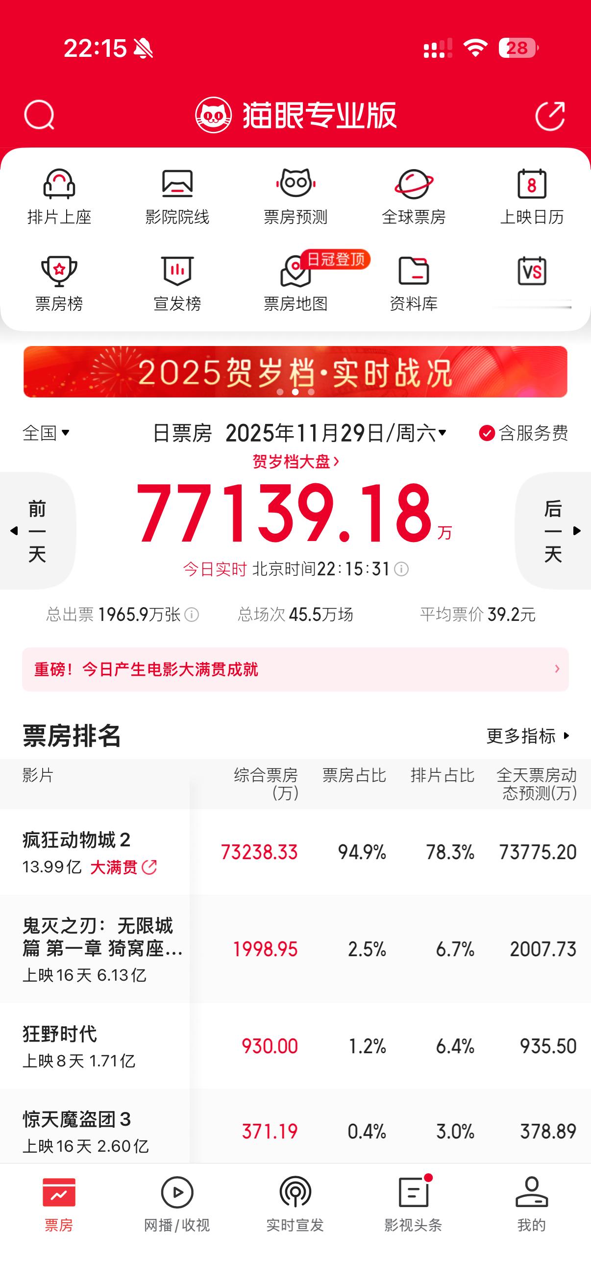 疯狂动物城 《疯狂动物城 2》成为首部在中国内地单日票房突破1亿美元的好莱坞电影,单日票房超越《复仇者联盟4》!