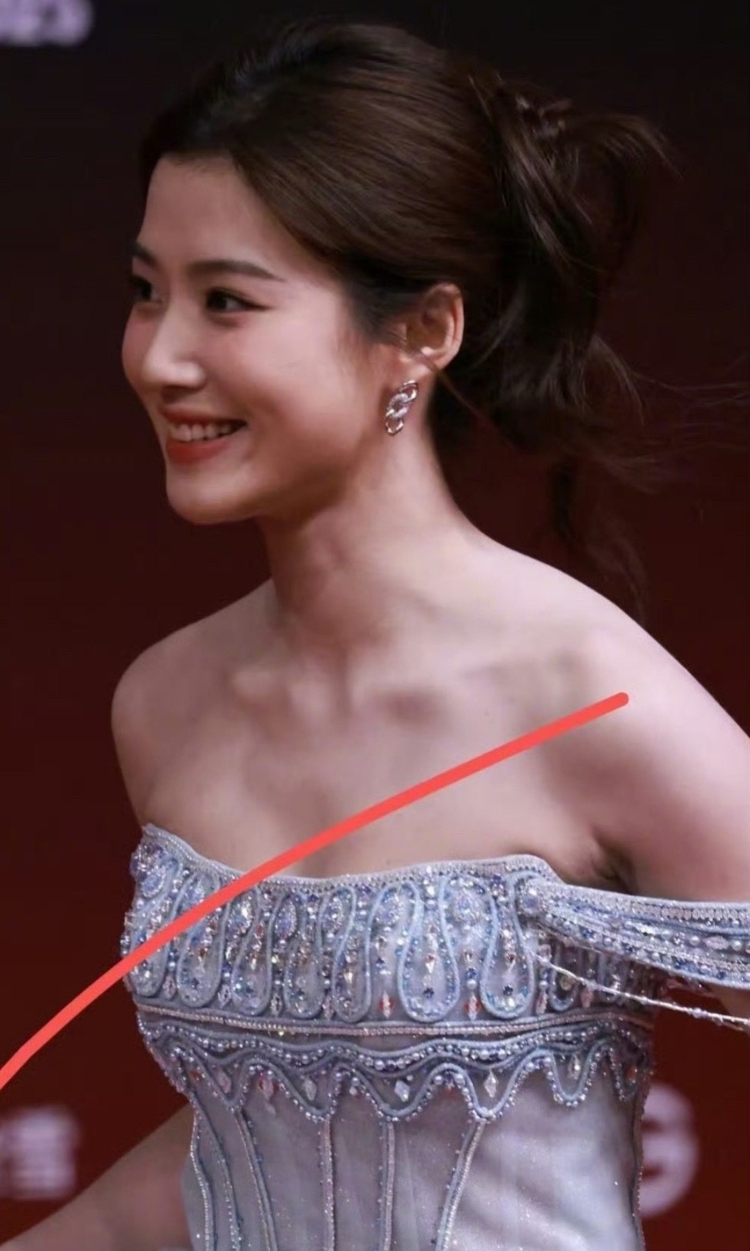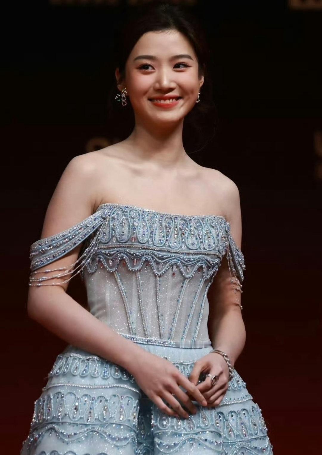 女明星卢昱晓参加活动走红毯照片曝光。之前很多网友都吐槽她身子长得有点壮。其实你看人家这个骨架还好,尤其是穿上露肩装之后,哪怕锁骨大面积露出,肩膀也都露出来了,但是依然能看得下去,并不像网友说的那么胖。有时候网友的审美容易被一些明星带偏。什么骨感美女,上镜胖三分等等。但普通大众喜欢的偏偏是这种肉肉的美女,你说是吗?