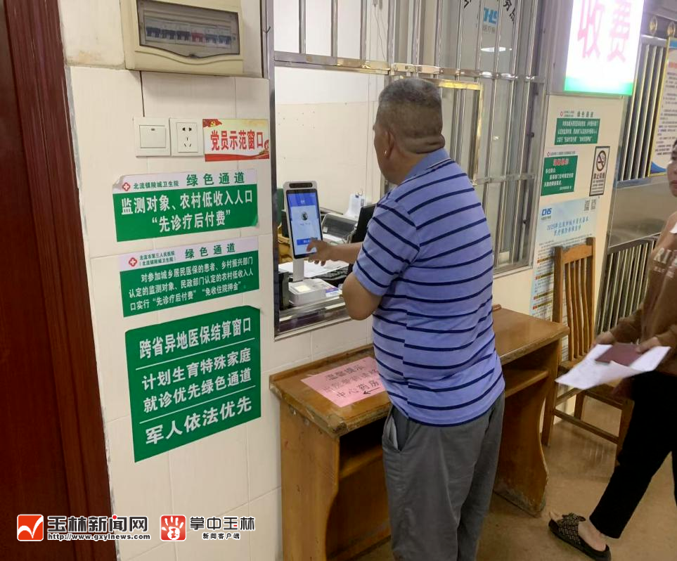 北流市陵城镇卫生院医保结算窗口,市民正在进行刷脸支付。