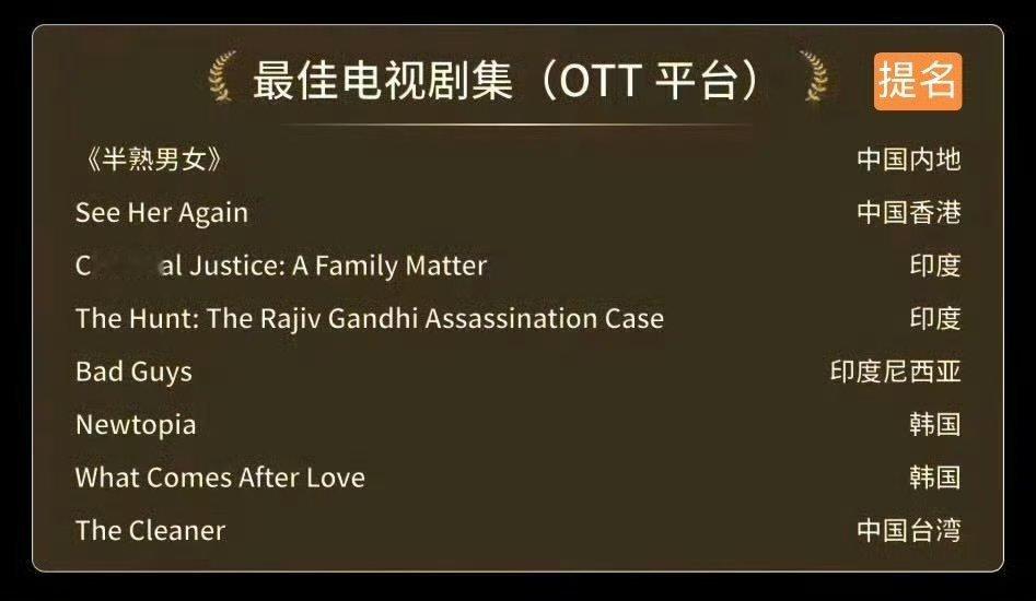 田曦薇《半熟男女》获得第30届亚洲电视大奖最佳电视剧集(OTT平台)奖项!!