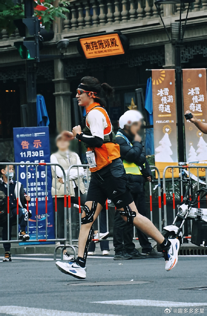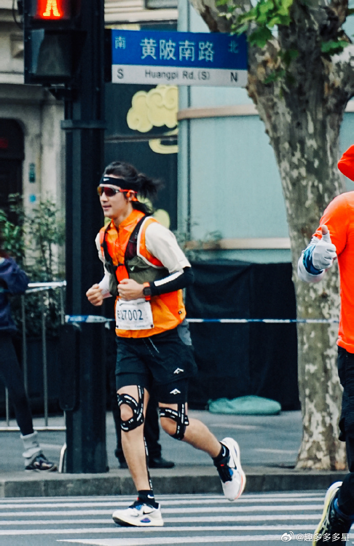 上海马拉松偶遇此沙上海马拉松偶遇此沙也太惊喜了吧!橘色运动装备+半扎发辨识度拉满