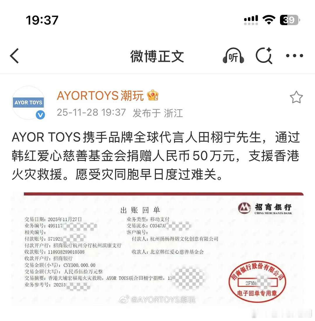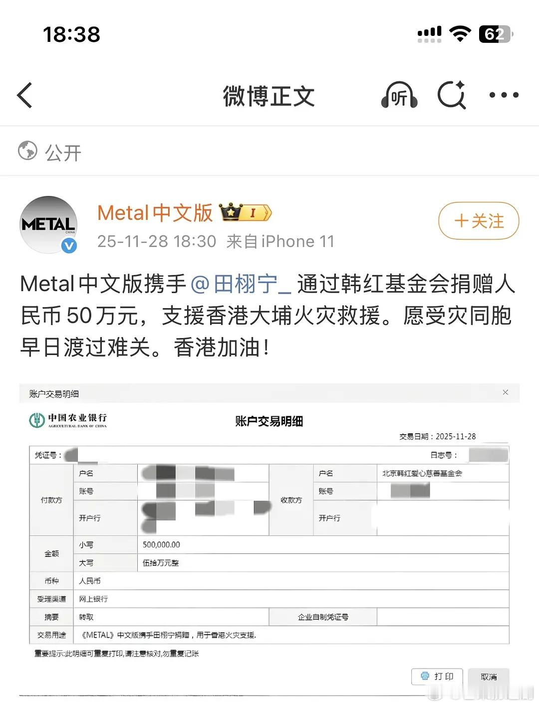 华策经纪、Metal杂志、品牌携手田栩宁共捐款130万,但至今还没被认领