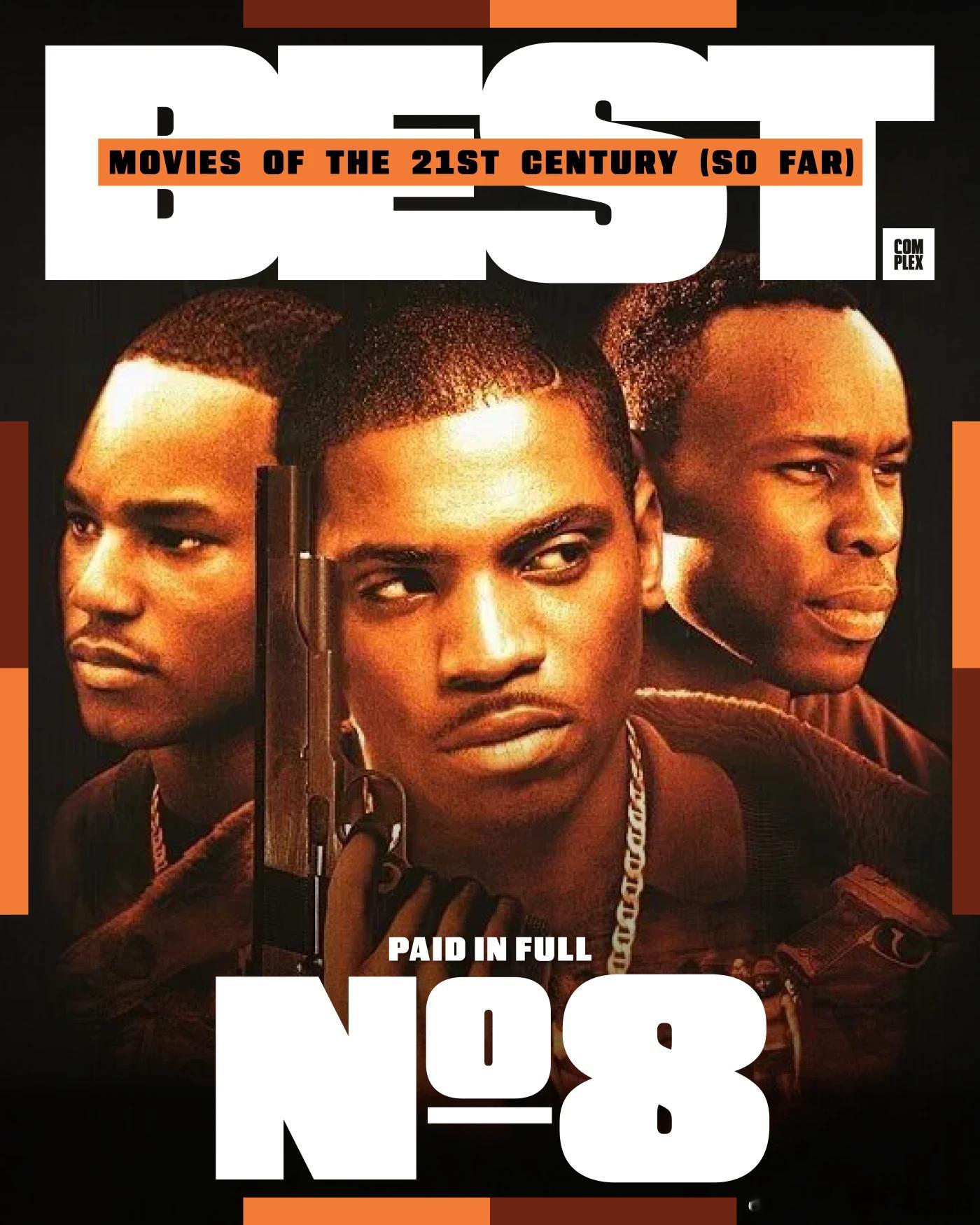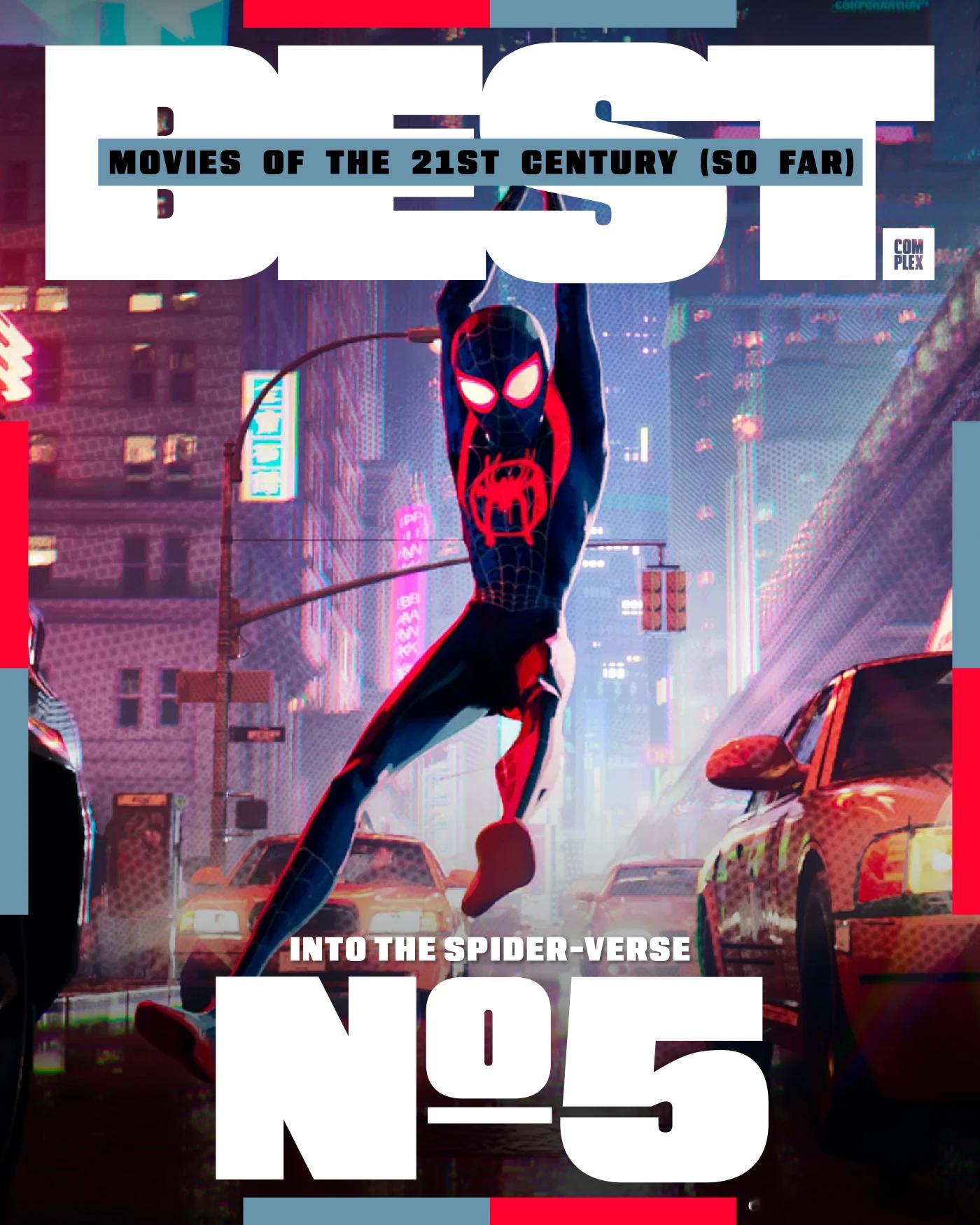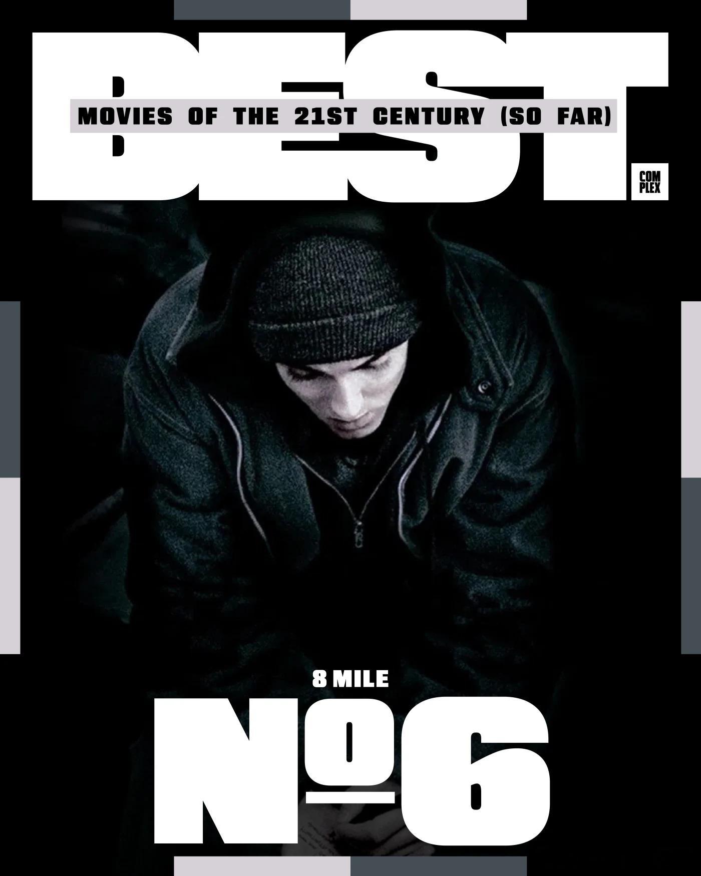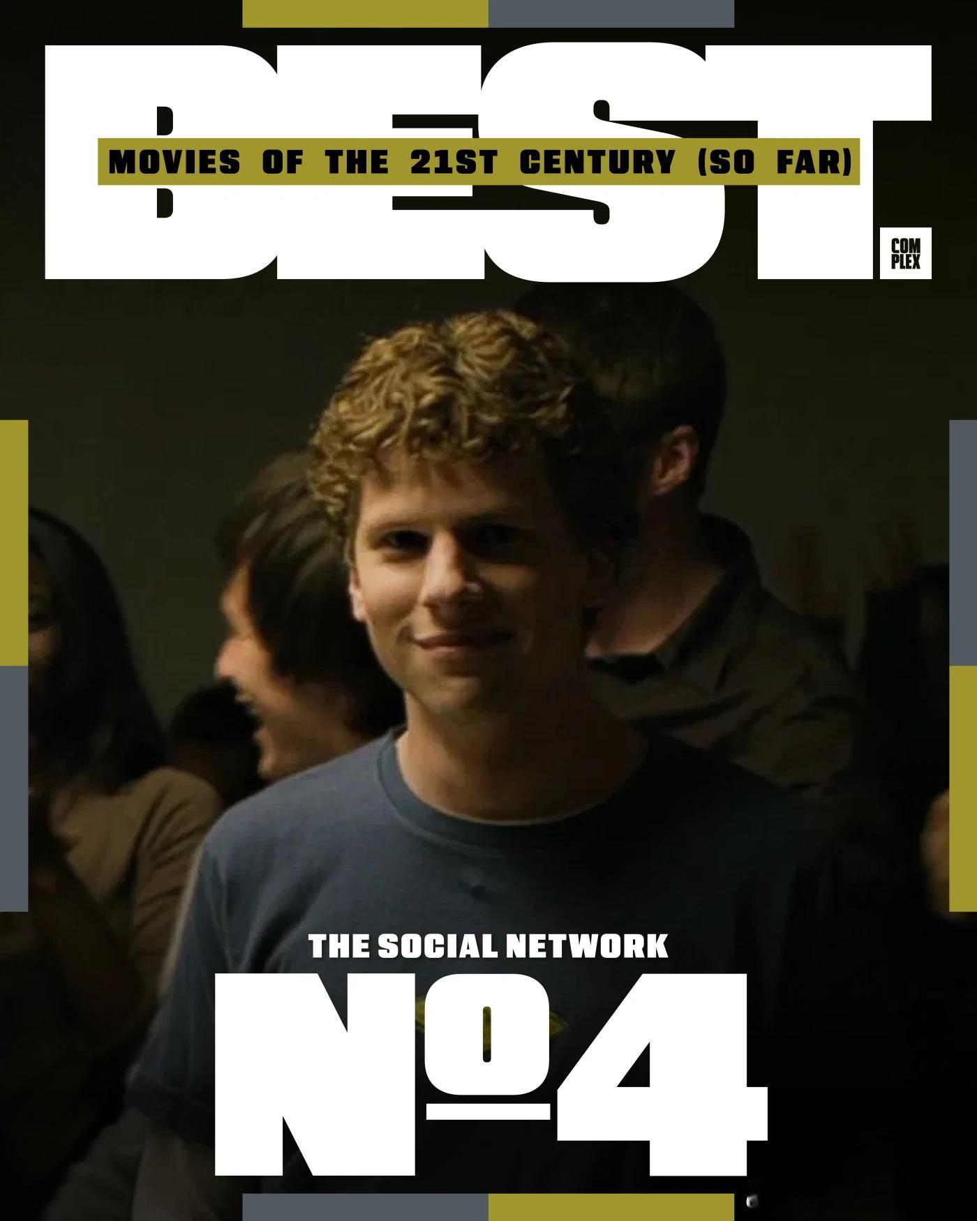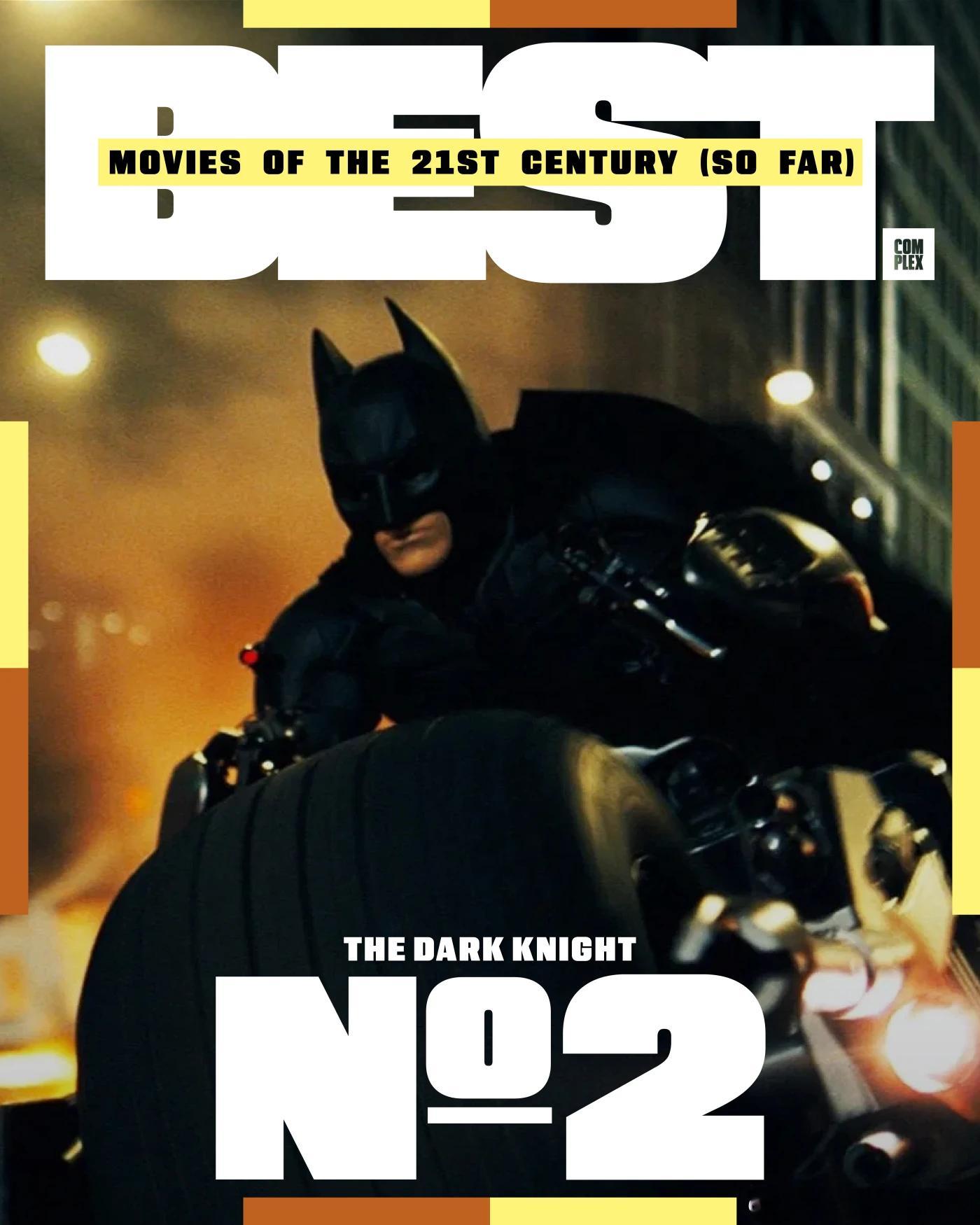 Complex评选21世纪至今的最佳电影,评选标准基于影片质量、对流行文化以及电影产业的影响,共25部:1. 《逃出绝命镇》2. 《蝙蝠侠:黑暗骑士》3. 《太坏了》4. 《社交网络》5. 《蜘蛛侠:平行宇宙》6. 《8英里》7. 《华尔街之狼》8. 《全款交收》9. 《黑豹》10. 《千与千寻》11. 《原钻》12. 《训练日》13. 《王牌播音员》14. 《疯狂的麦克森4: 狂暴之路》15. 《瞬息全宇宙》16. 《复仇者联盟4: 终局之战》17. 《奎迪》18. 《杀死比尔》19. 《非亲兄弟》20. 《第25小时》21. 《罪人》22. 《月光男孩》23. 《遗传厄运》24. 《爱情和篮球》25. 《宝贝男孩》