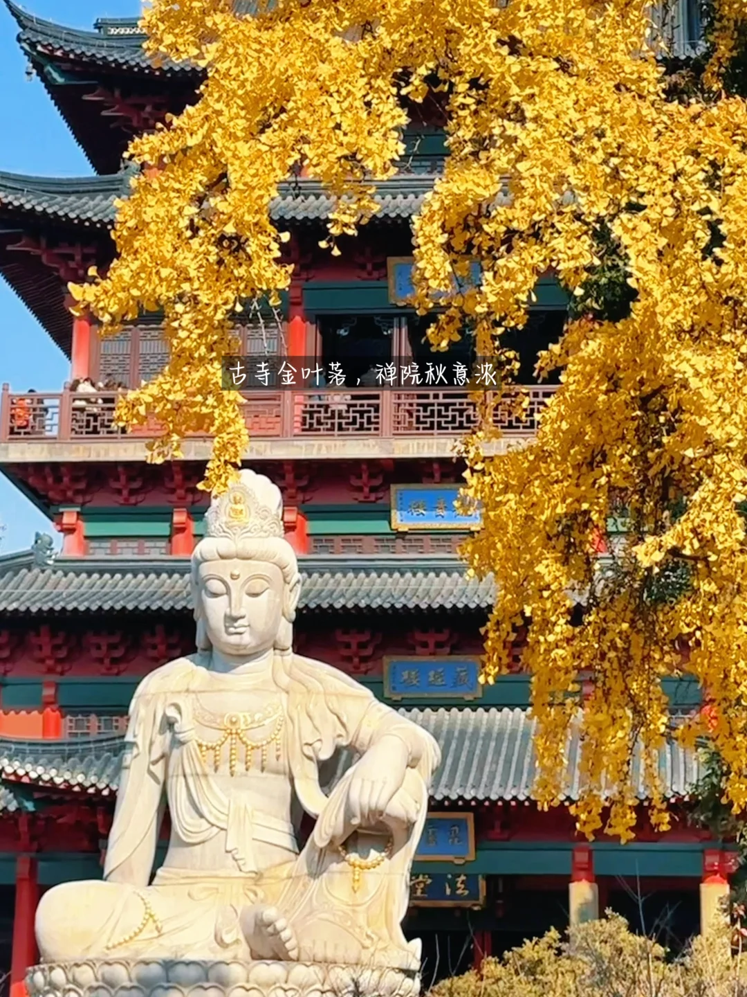 百年银杏落叶铺满古刹庭院,禅意浓浓,红墙金叶超好拍