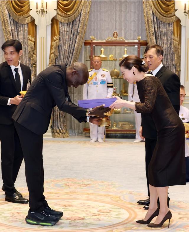 泰王和诗妮娜穿着情侣装拿着灯缓缓而行,有美娇妻陪伴在侧,泰王很享受呀。他挺会享福的,王后大气,在他身边待人接物得体大方。