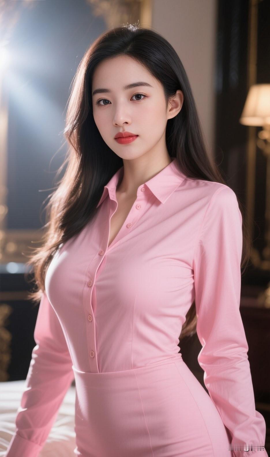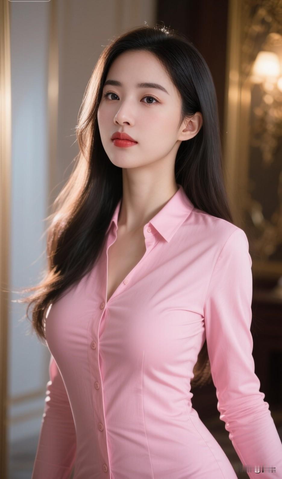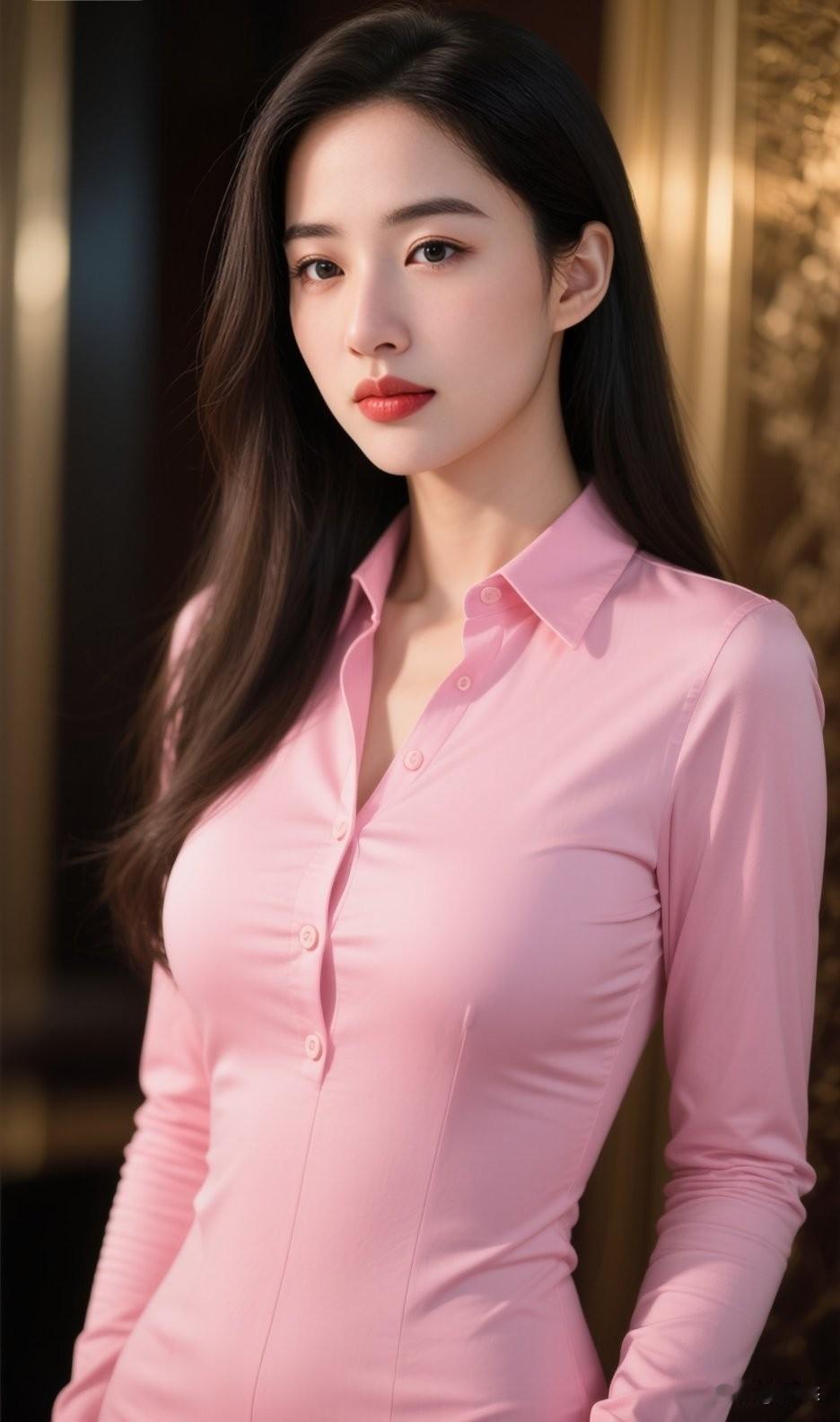 她美得风情万种!白色衬衫微敞,勾勒出迷人曲线,浅粉包臀裙紧紧包裹,衬得腰肢纤细、