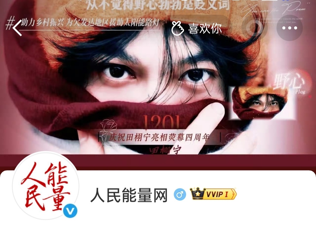 能量中国与人民能量网更换田栩宁版头能量中国官方与人民能量网更换板头庆祝田栩宁亮相