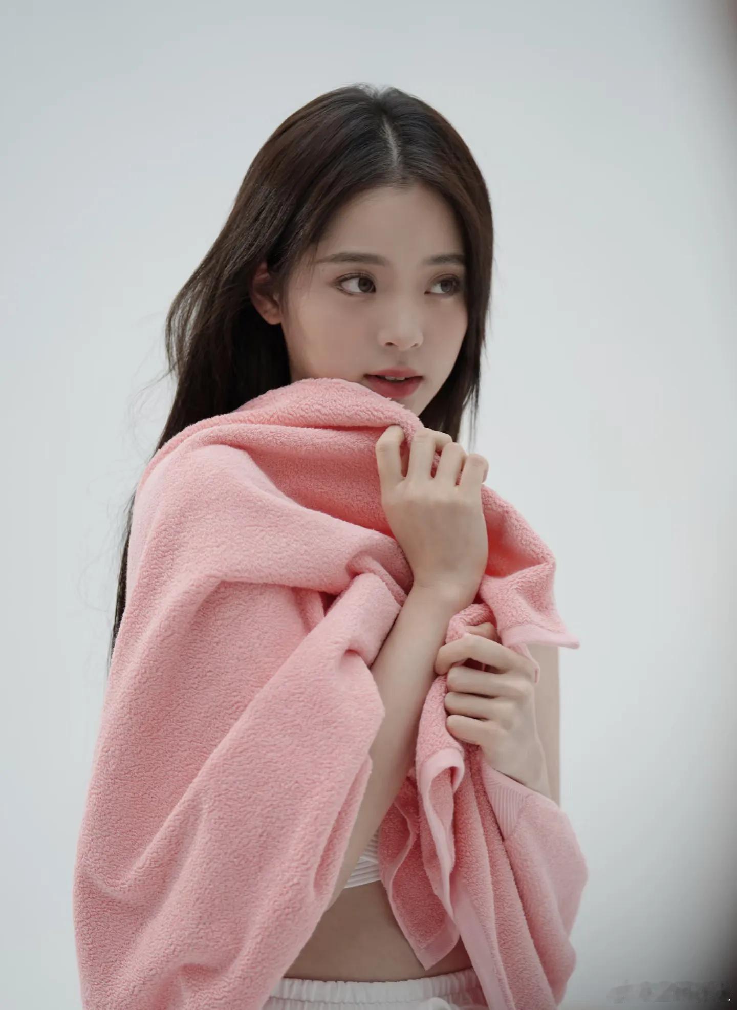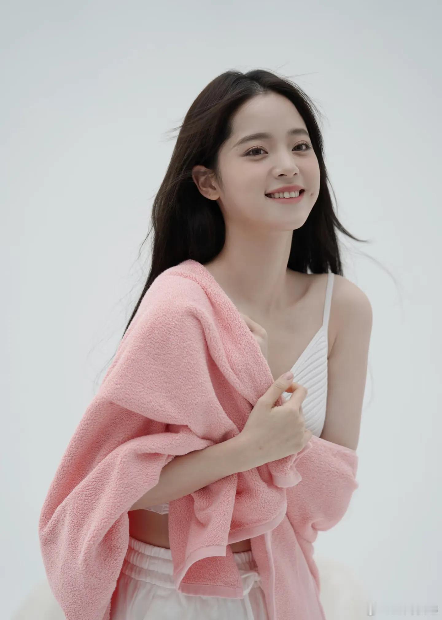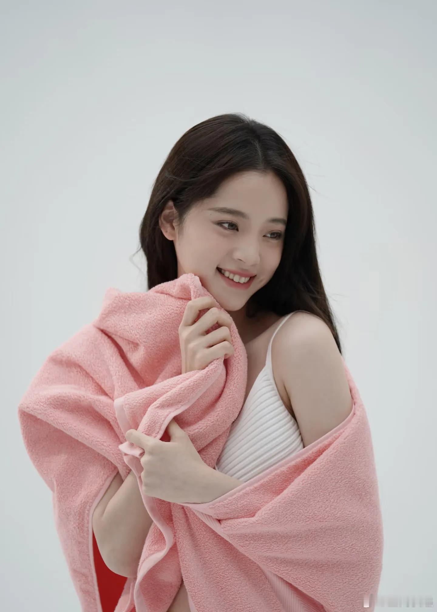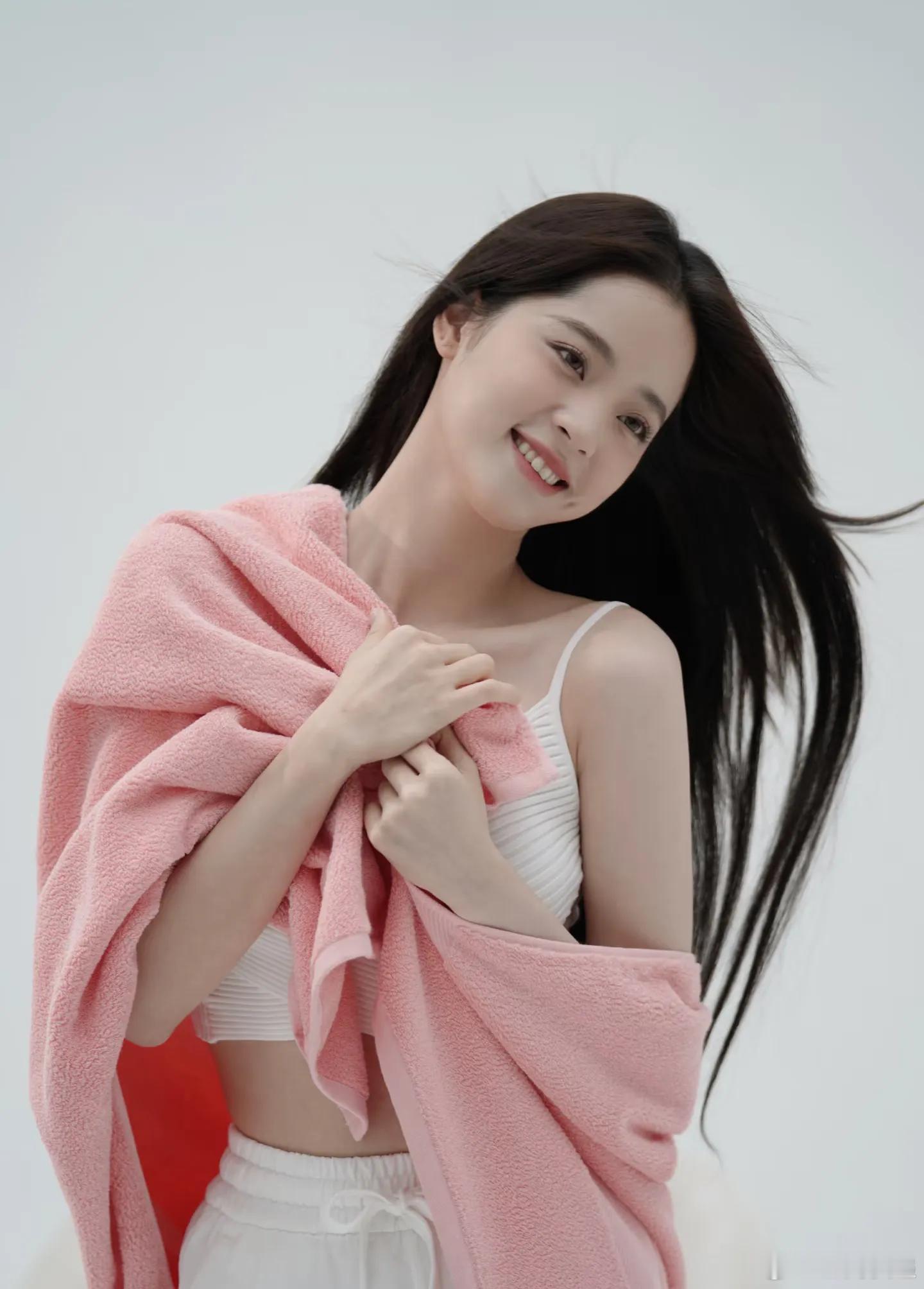 欧阳娜娜这组图甜到齁!粉浴巾+白吊带,少女感要溢出屏幕了!欧阳娜娜